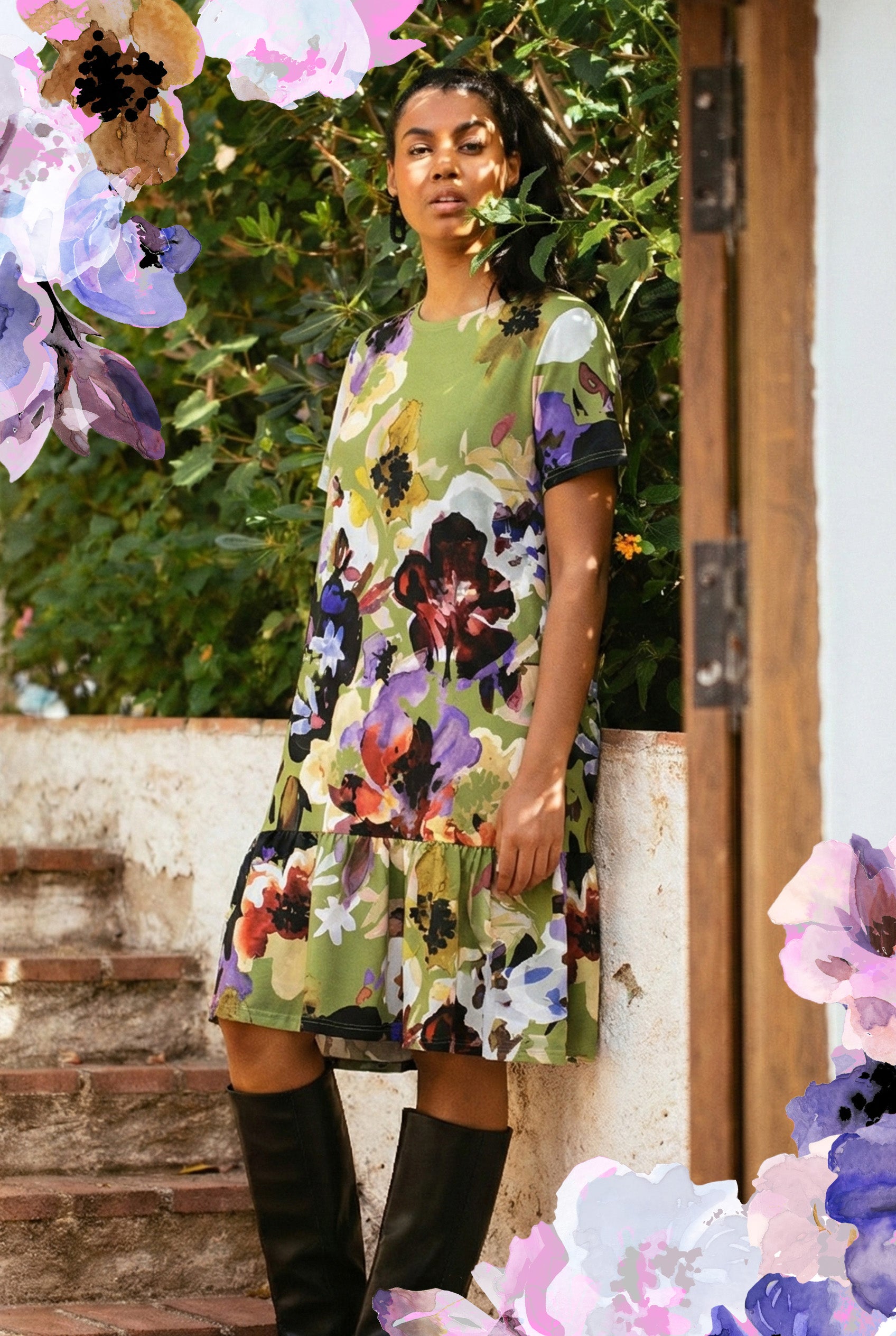Tiered Midi Dress, Blooming Forest