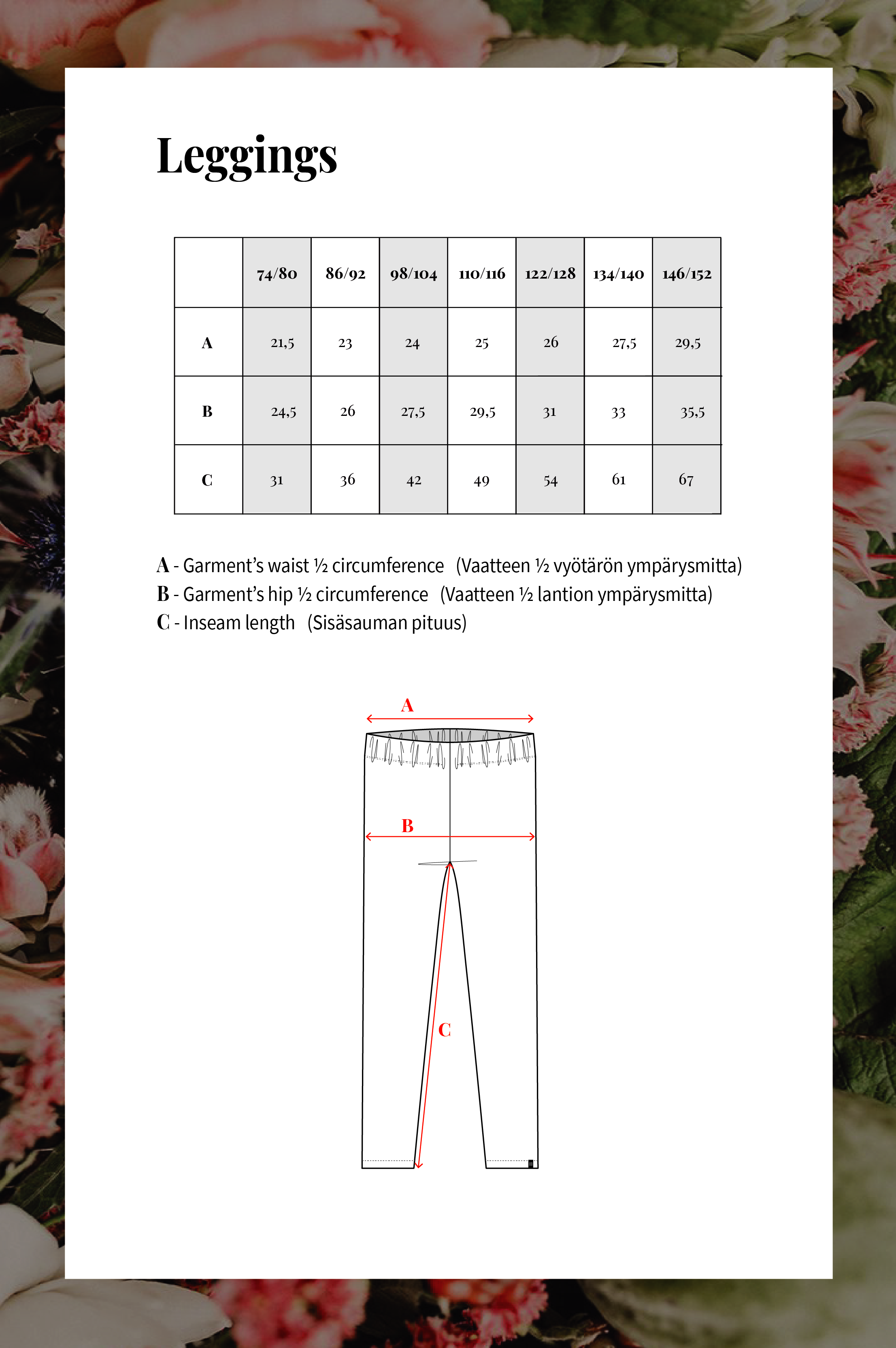 Kaikon aiemmista mallistoista tuttu leggingsmalli Blue-Blossom -kuosissa. Pehmeät luomupuuvillaiset leggingsit ovat jokaisen vaatekaapin luottotuote - täydelliset niin arkeen kuin juhlaan.
