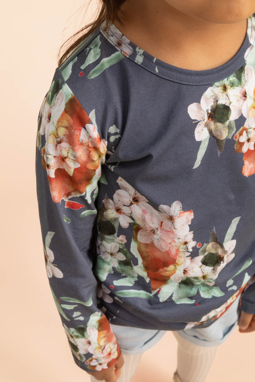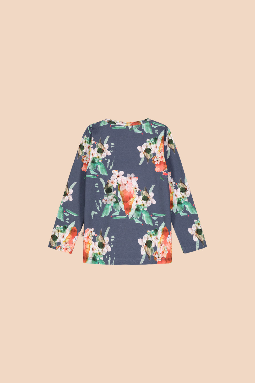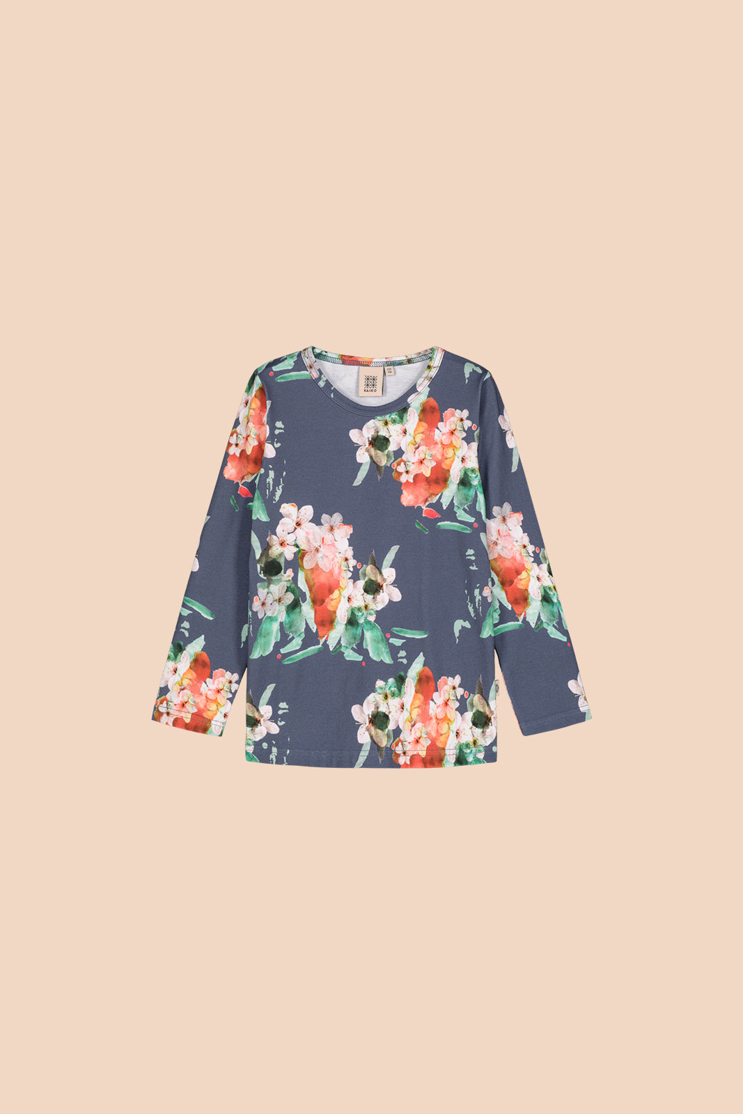 Blue Blossom t-shirt on pehmeä luomupuuvillainen trikoopaita pitkillä hihoilla. Mukava ja helposti moneen asuun yhdisteltävissä oleva paita on jokaisen vaatekaapin kulmakivi. Paidan kuosina Kaiko-klassikko, Blue Blossom.