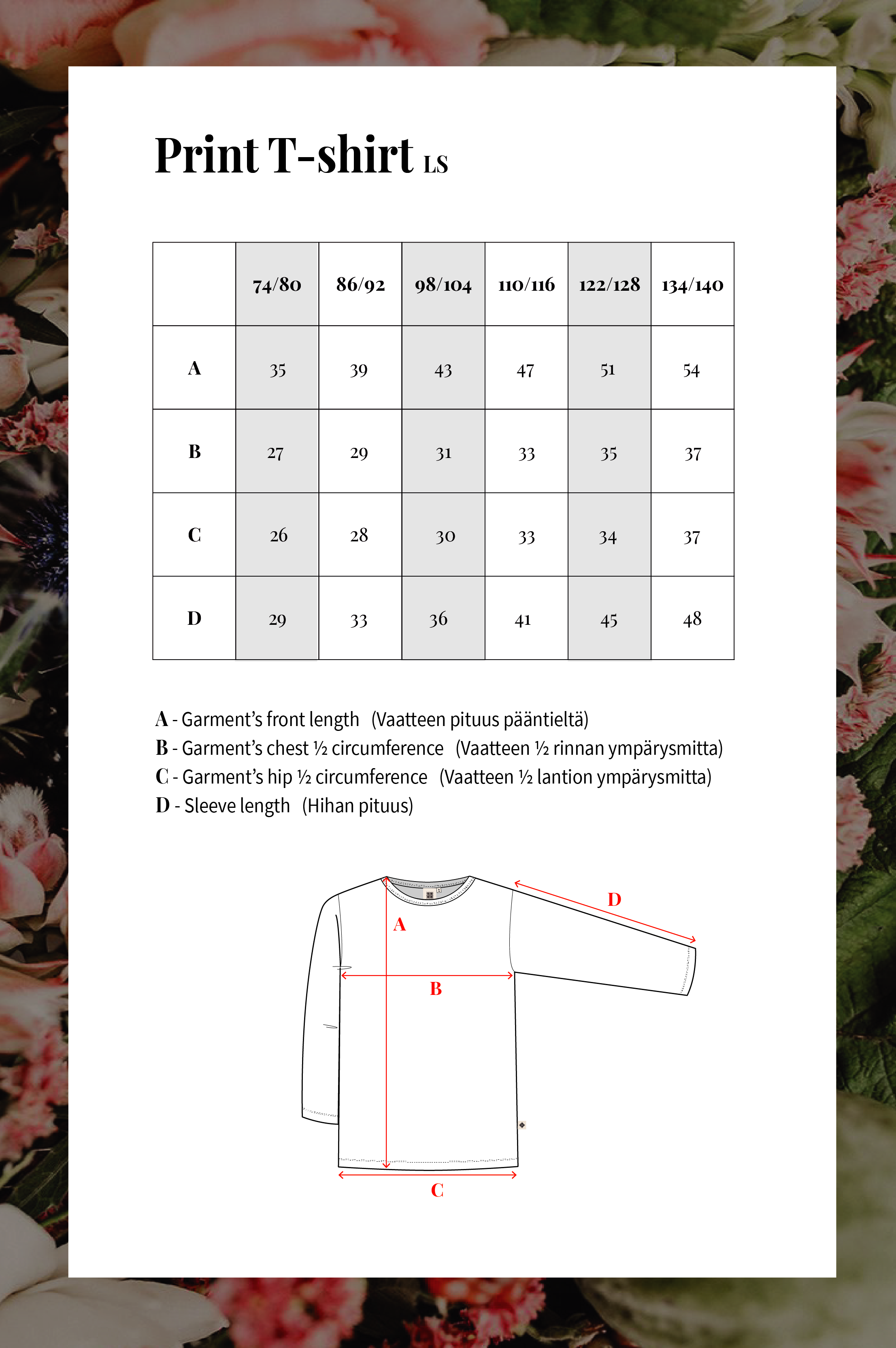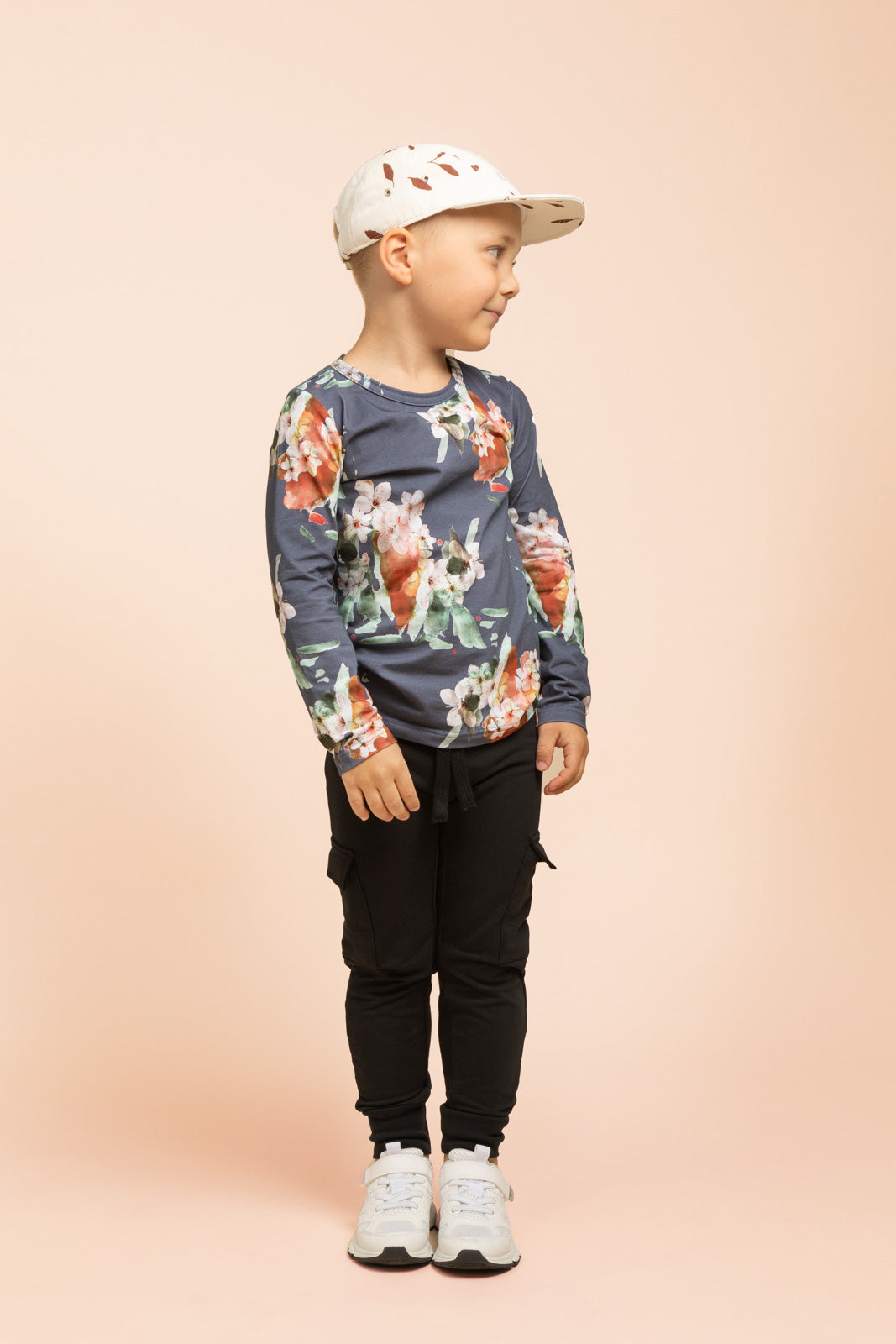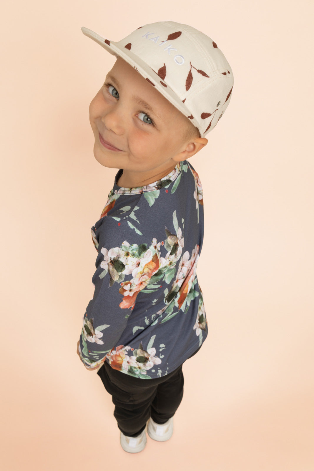 Blue Blossom t-shirt on pehmeä luomupuuvillainen trikoopaita pitkillä hihoilla. Mukava ja helposti moneen asuun yhdisteltävissä oleva paita on jokaisen vaatekaapin kulmakivi. Paidan kuosina Kaiko-klassikko, Blue Blossom.