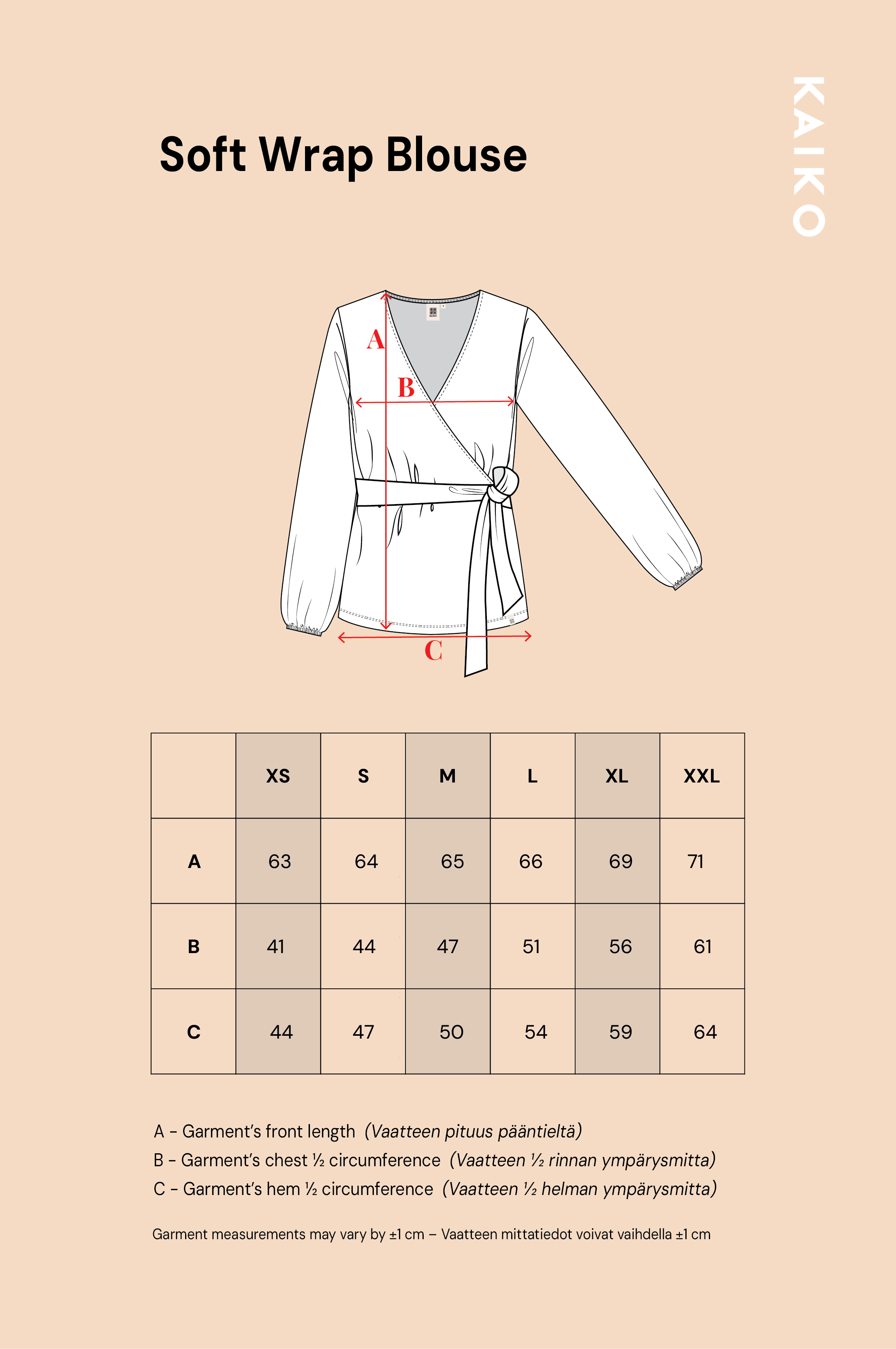 4. Saat myös asiakaspalvelustamme info@kaikoclothing.com nopeaa ja luotettavaa apua koon valintaan.