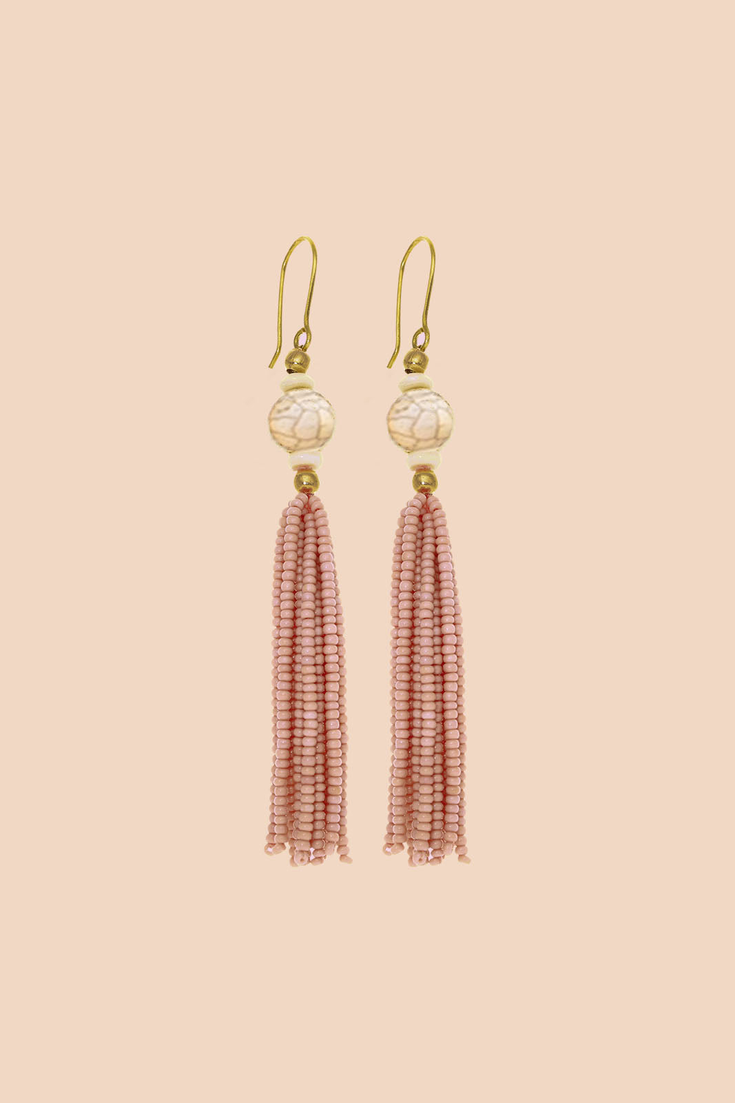 Kaikon Amelia-korvakorut on valmistettu käsityönä Nepalissa, ja ne koostuvat luonnonkivistä, lasihelmistä ja messingistä. Korun koko pituus on noin 9 cm. Korvakorujen metalliosat ovat messinkiä ja nikkelivapaat, mutta voivat ärsyttää erittäin herkkää ihoa.