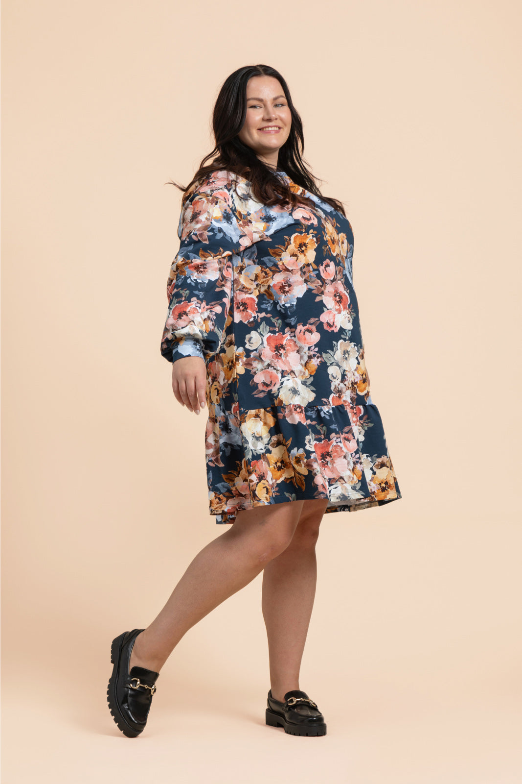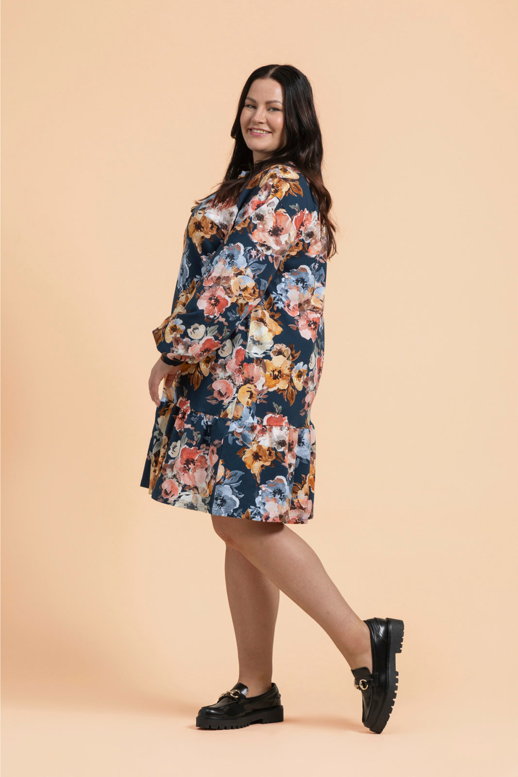 Tämä vastuullisesti valmistettu collegemekko ihastuttaa rennolla oversize-istuvuudellaan ja leikkisällä frillahelmadetaljillaan. Pehmeässä mekossa on lyhyehkö helman pituus, laskettu olkalinja ja täyspitkät hihat. Mekon kuosina petroolinsinipohjainen kukkakuosi Moss Rose.