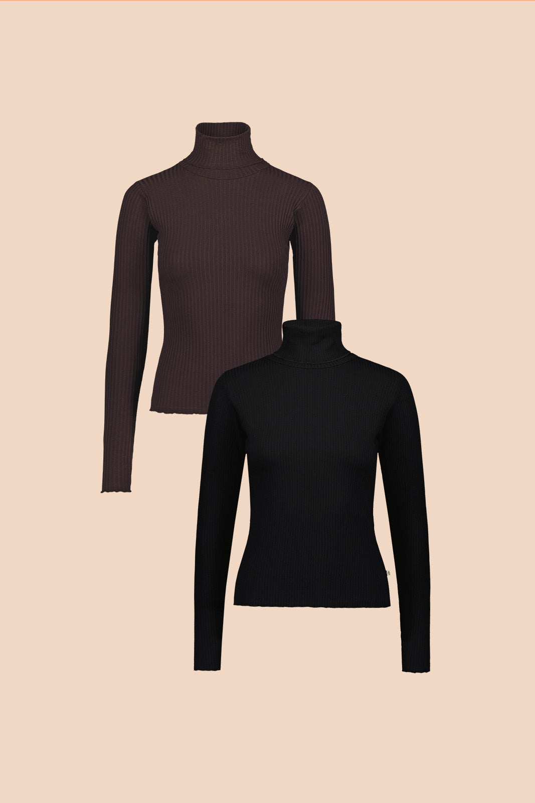 Rib Rollneck tuplapakkaus, Black & Chocolate