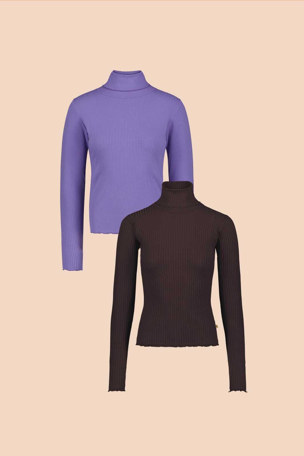 Rib Rollneck tuplapakkaus, Chocolate & Vivid Lavender