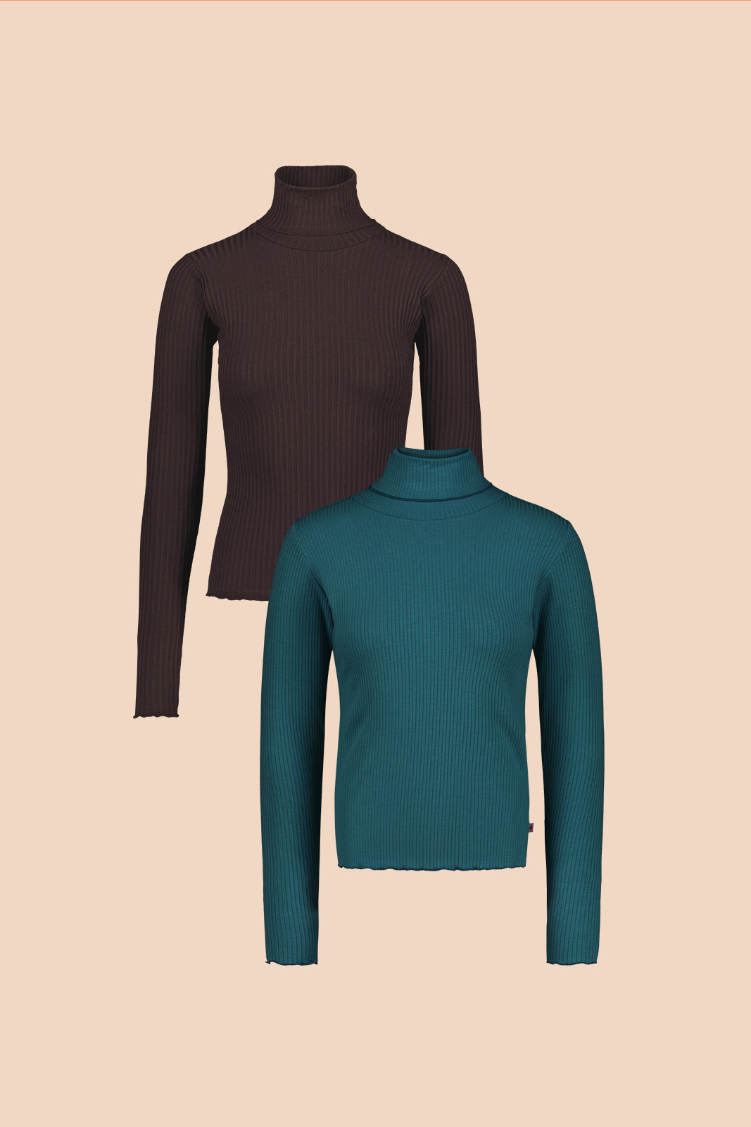 Rib Rollneck tuplapakkaus, Petrol & Chocolate
