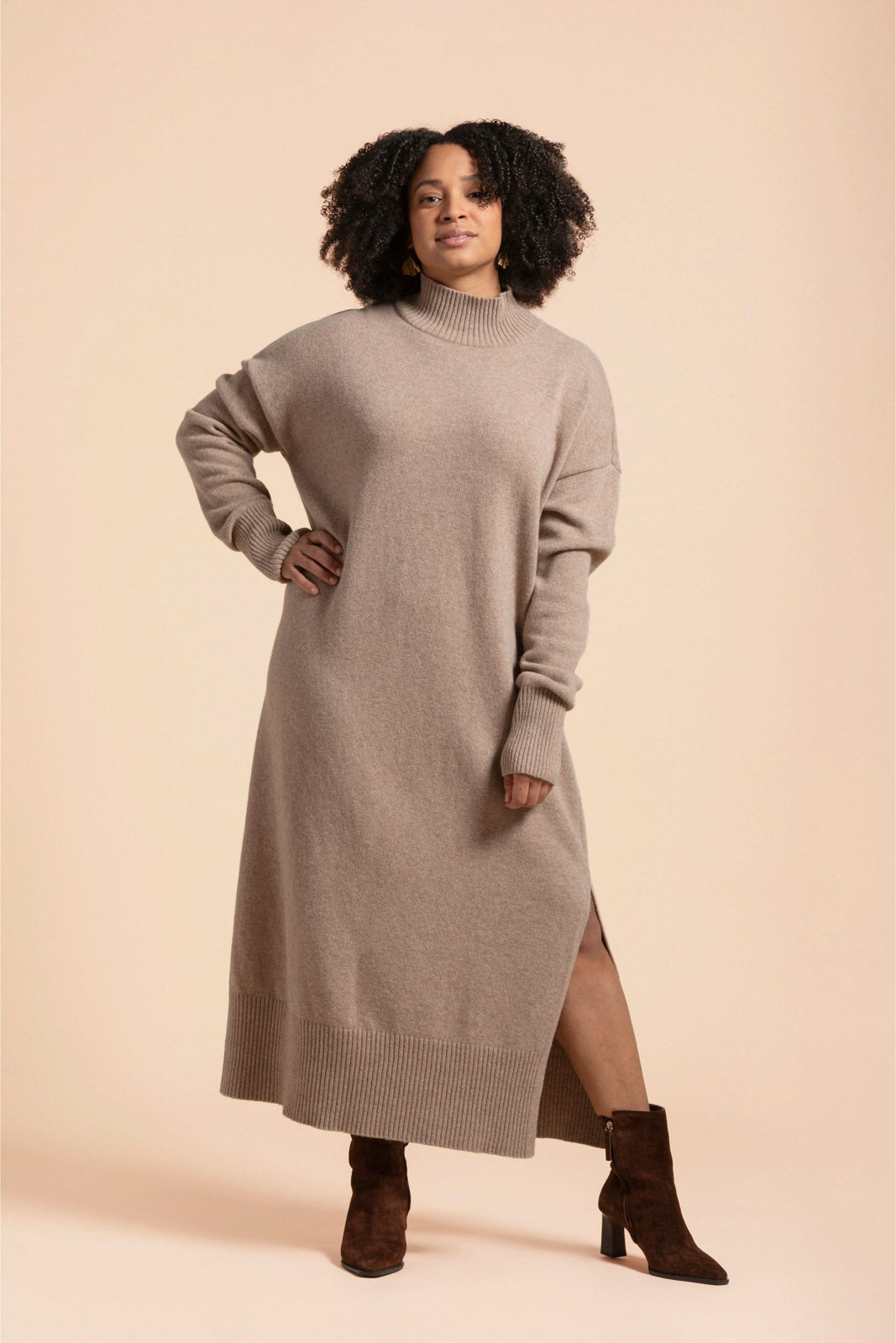 Korkealaatuinen ja ihanan lämmin Wool Midi Dress on ylellinen naisten neulemekko 100 % merinovillasta. Ajattomassa mekossa on väljä, oversize-istuvuus ja laskettu olkalinja. Sivusaumoissa on korkeat, 40 cm halkiot. Helmassa, hihansuissa ja pääntiellä on resorit. Mukana tuleva neulottu vyö tuo monipuolisuutta stailaukseen.