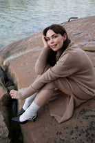 Tässä ylellisessä villamekossa pysyt lämpimänä ja tyylikkäänä koko talvikauden. Sävynä mekossa klassinen beige.