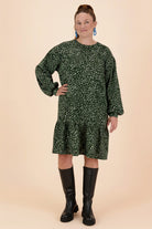 Ruffle Sweatshirt Dress, Wild Dots Moss