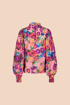 Klassiset design-elementit, kuten näyttävät volyymihihat ja elegantti smock-rypytys ranteissa, tekevät tästä pitkähihaisesta puserosta täydellisen valinnan sekä toimistopäiviin että juhlaan. Tyylikästä pystykaulusta koristavat selkäpuolella kauniit päällystetyt napit ja halkio. Paidan kuosina on näyttävä Pink Marigold.