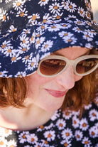 Tyylikäs Boho Sun Hat -lierihattu on valmistettu 100% luomupuuvillasta. Leveälierisen Boho Sun Hatin design on rennon boheemi. Kuosina ajaton Daisy, jossa päivänkakkarat rönsyilevät mustalla pohjalla.