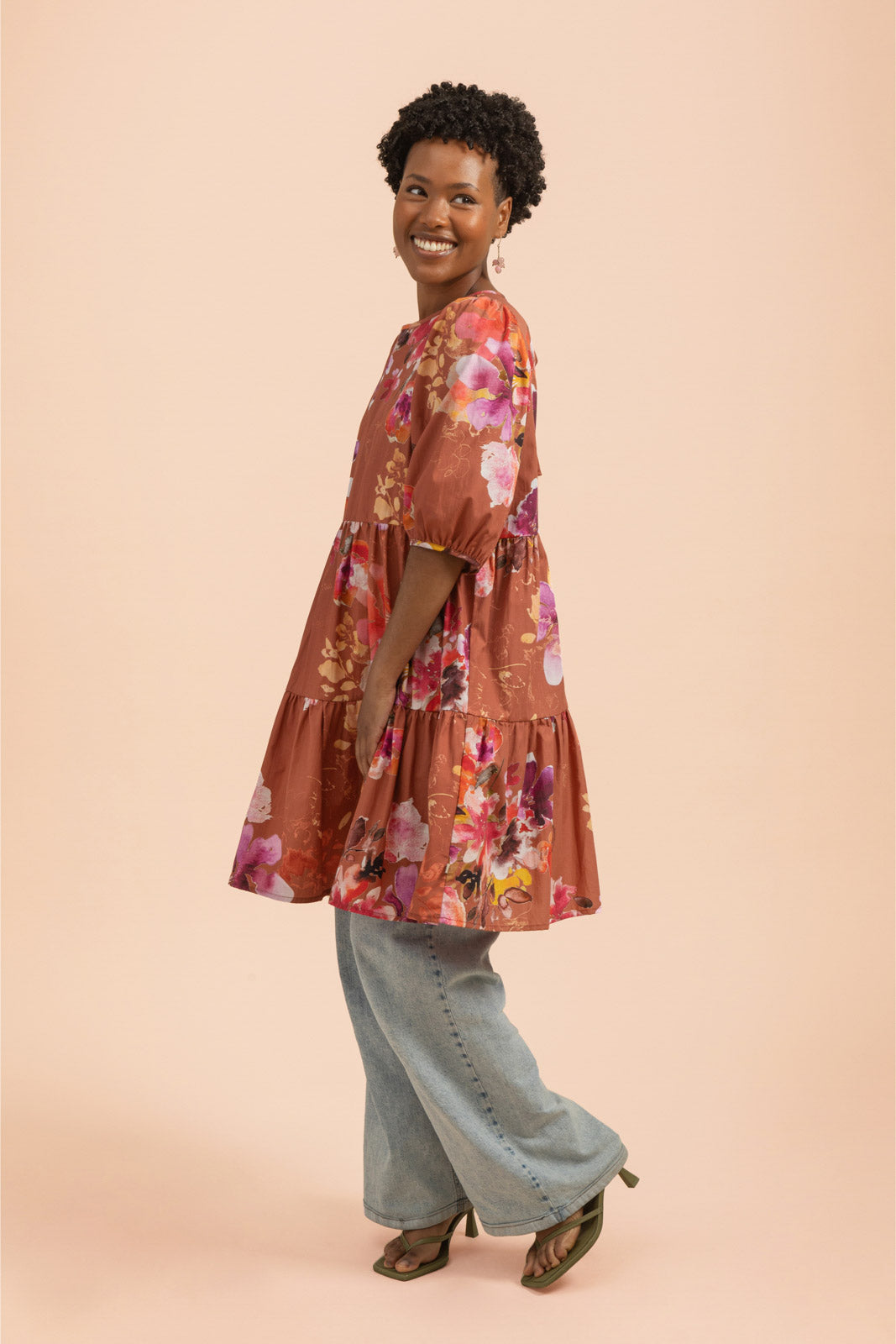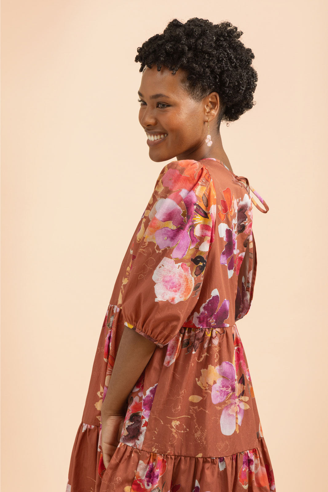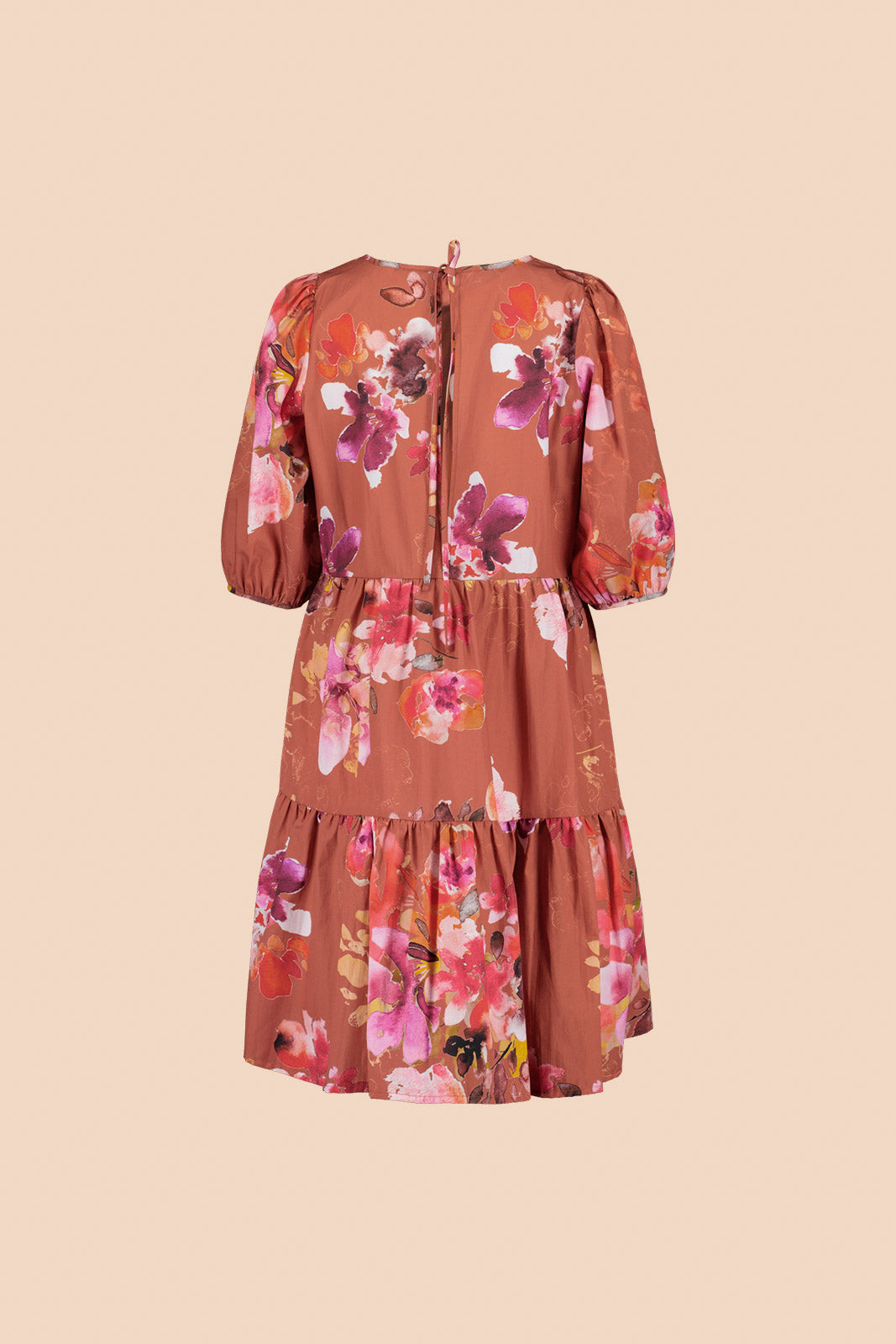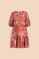 Stailaa laadukas naisten mekko omaan tyyliisi sopivaksi: korkojen ja pikkulaukun kanssa juhlaan, tai rennosti tennareiden ja sandaalien kanssa arkeen. Lilies-kukkakuosi yhdistää punertavan rusehtavan pohjavärin ja suurikokoiset, vesivärimäiset kukkakuviot luoden ajattoman ja näyttävän kokonaisuuden.