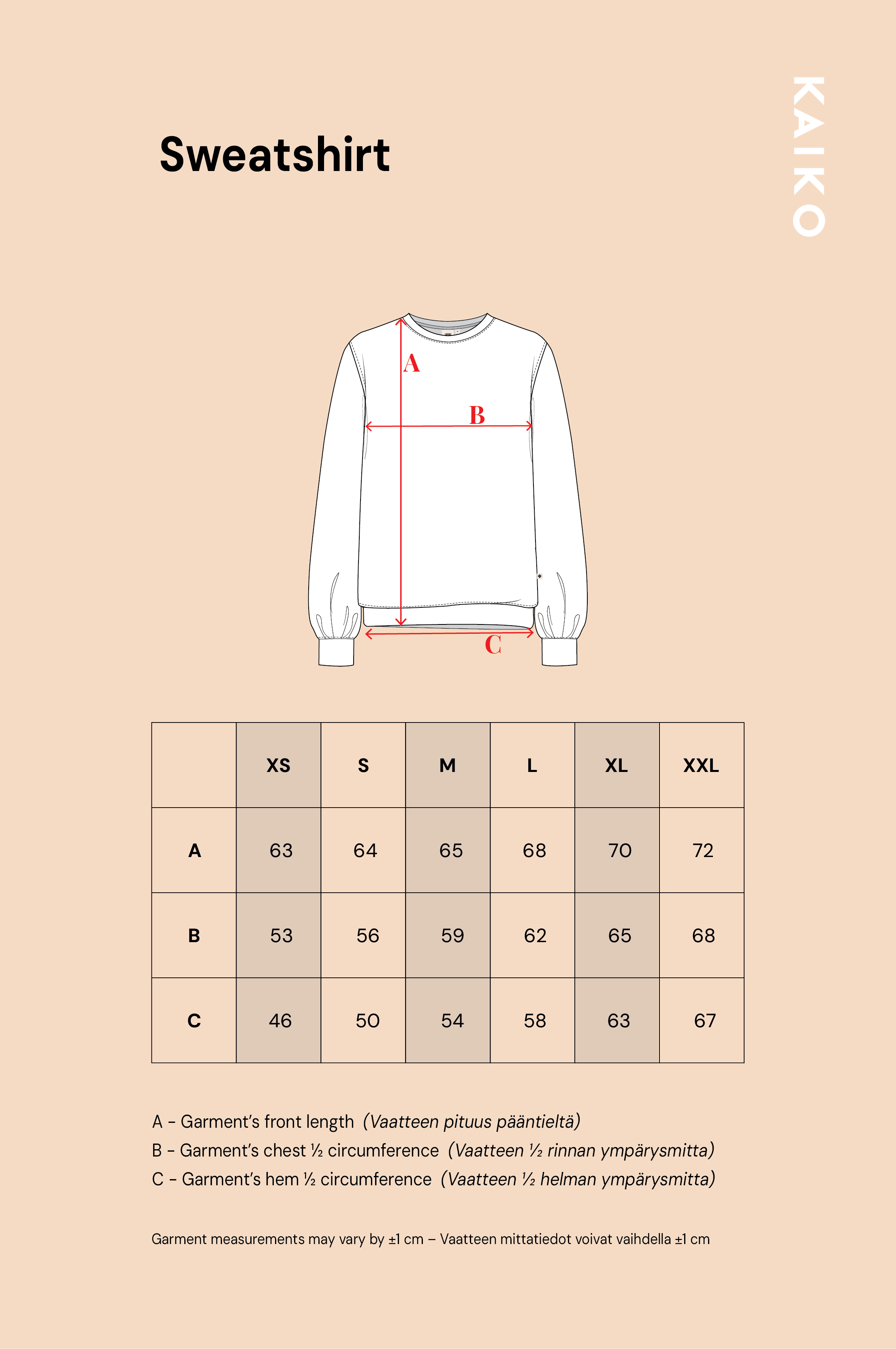 4. Saat myös asiakaspalvelustamme info@kaikoclothing.com nopeaa ja luotettavaa apua koon valintaan.