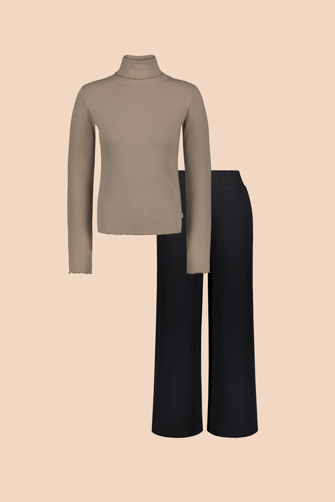 Culottes & Rib Rollneck -pakkaus, Taupe