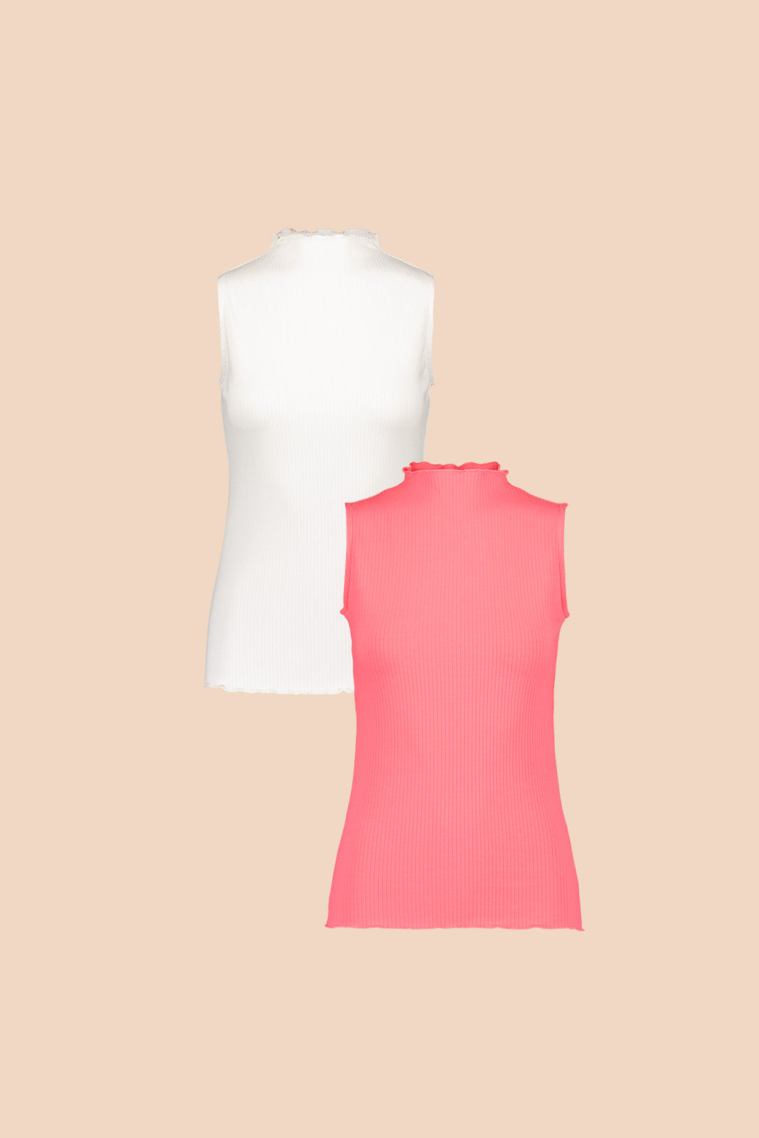 Rib Top on tyköistuva hihaton ribbineulostoppi, jossa on elegantti kilpikonnakaulus. Pääntie ja helma on viimeistelty rullapäärmeellä, joka luo kauniin yksityiskohdan klassiseen toppiin. Ribbineulos on sileää ja hyvin laskeutuvaa materiaalia, jossa on ylellinen tuntu. Ribbitoppi toimii niin sellaisenaan, kuin puettuna esimerkiksi neuletakin, kimonon tai mekon alle.