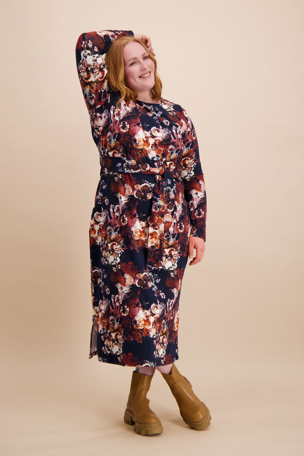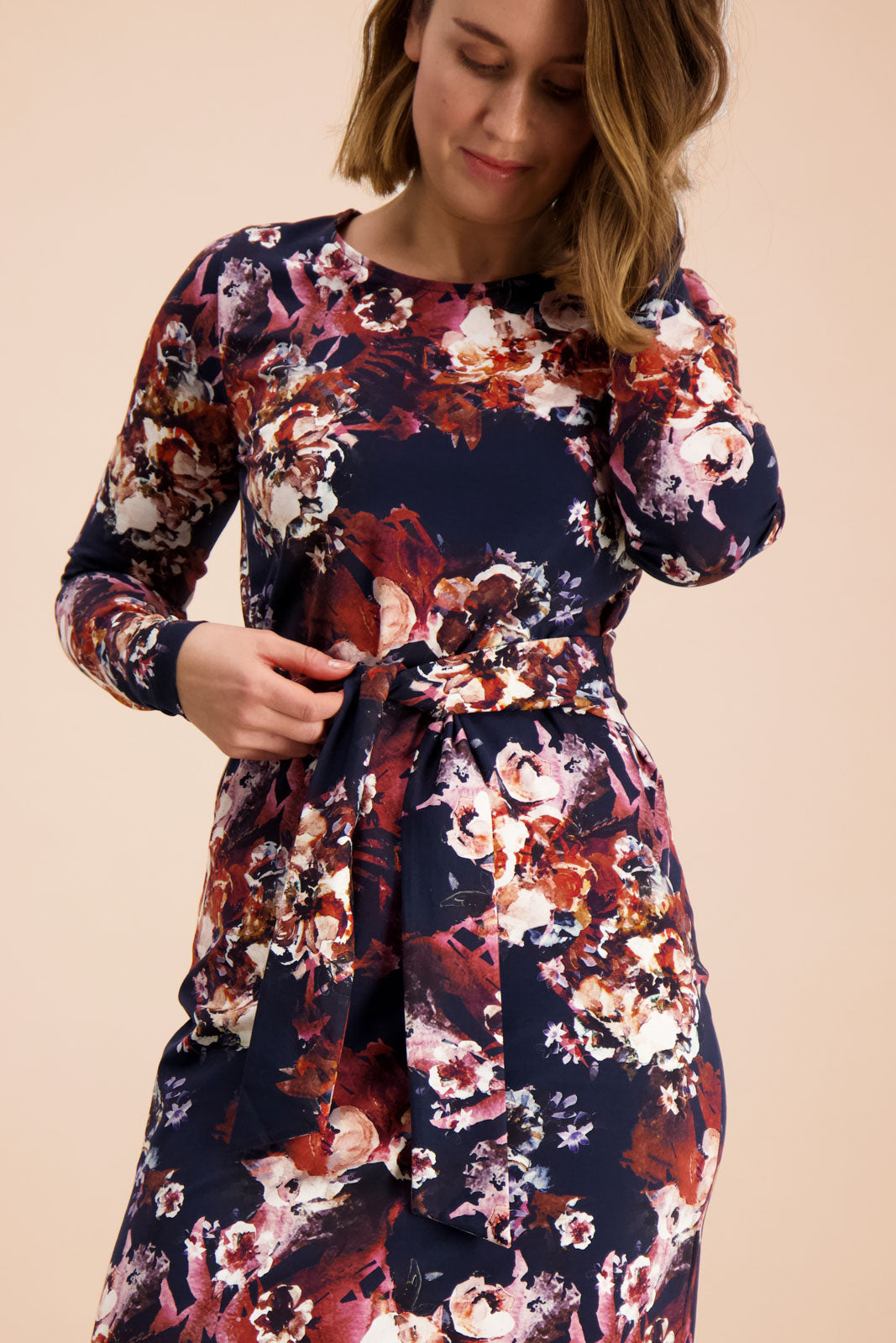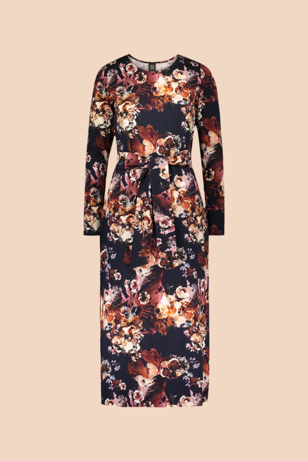 Pehmeästä luomupuuvillatrikoosta valmistettu Midi Belted Dress on malliltaan naisellinen ja ihonmyötäinen. Mekon sivusaumoissa on vyötäröä korostavat leveät nauhat, jotka voi solmia joko eteen tai taakse. Helman pituus on noin pohjemittainen, ja sivusaumoissa kulkee 20 cm halkiot. Mekossa on pitkät hihat. Midi Belted Dress on helppo stailata niin arki- kuin juhlapäiviin. Trikoomekon kuosina Cobalt Rose, joka on tutkielma kuunvalon maalaamasta puutarhasta. Kuosissa vesivärikukat rönsyilevät valtoimenaan tummansinisellä pohjalla.