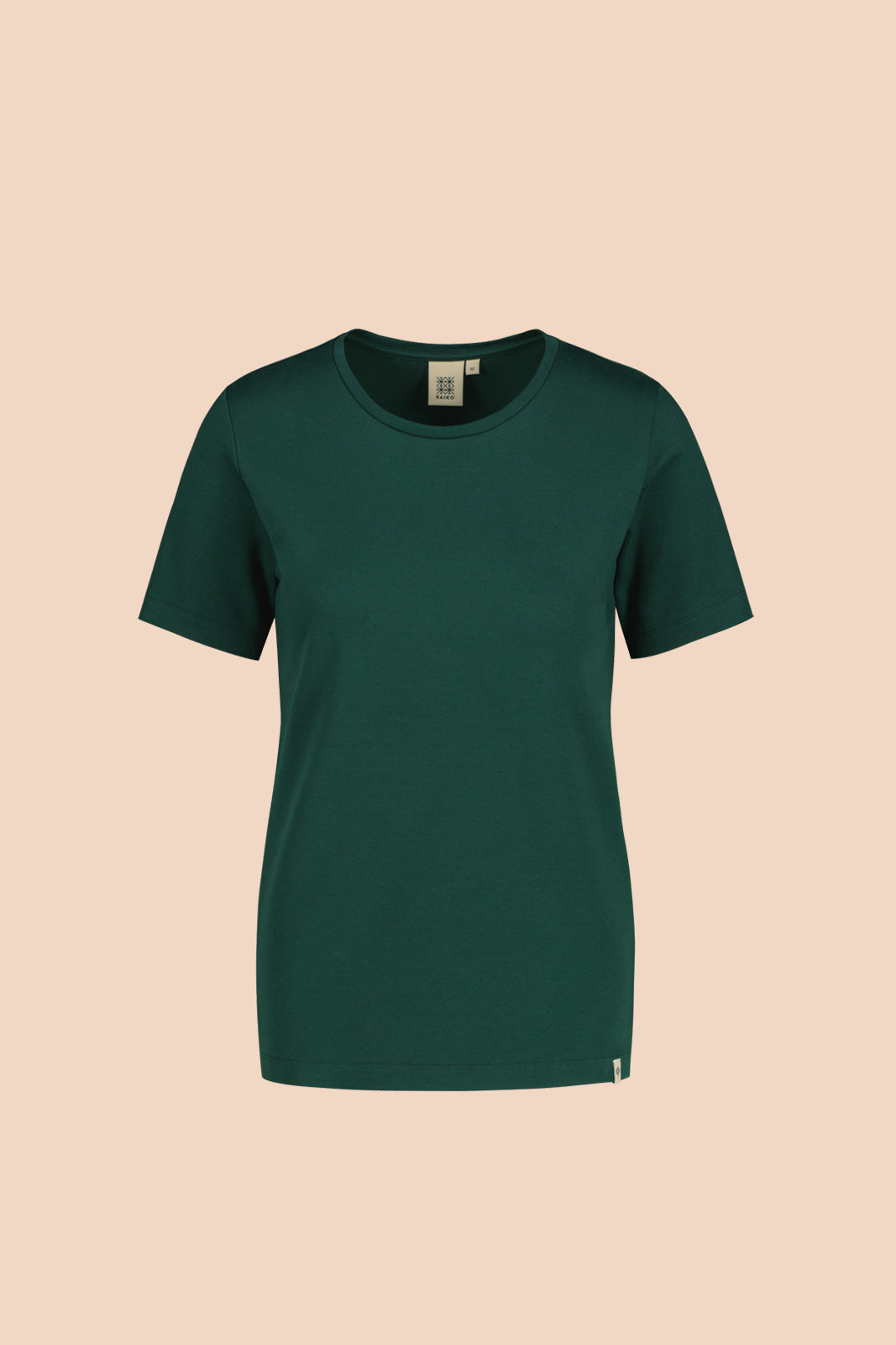 Tämä vastuullinen naisten t-paita on suunniteltu kestämään käytössä vuodesta toiseen ja toimii yhtenä vaatekaapin monikäyttöisimmistä vaatekappaleista. Yhdistä klassinen t-paita farkkuihin rennosti tai hameen kanssa tyylikkäämmäksi kokonaisuudeksi. T-paidan sävynä tummanvihreä.