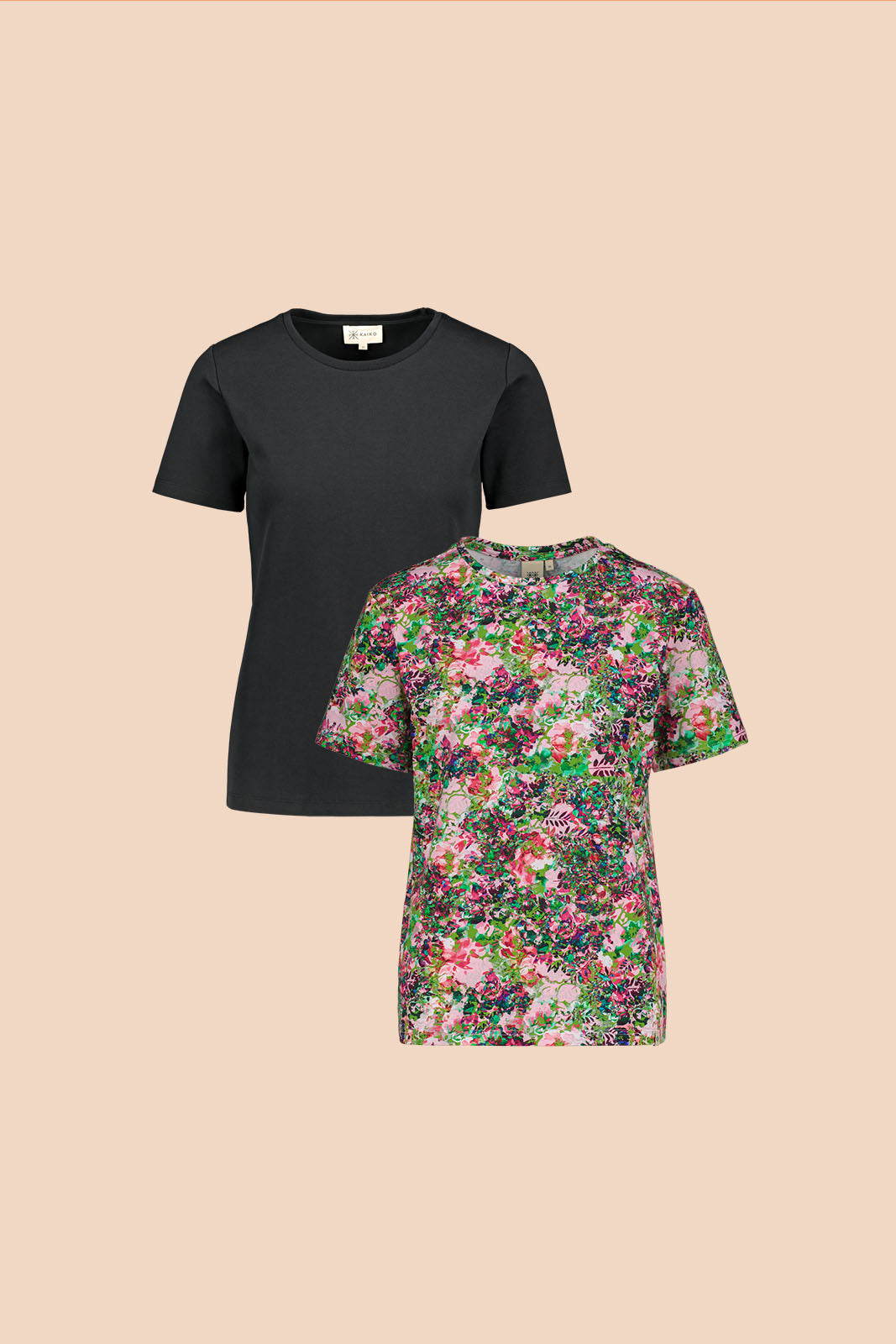 T-Shirt Doppelpack, Schwarz & Blooming Forest Bright