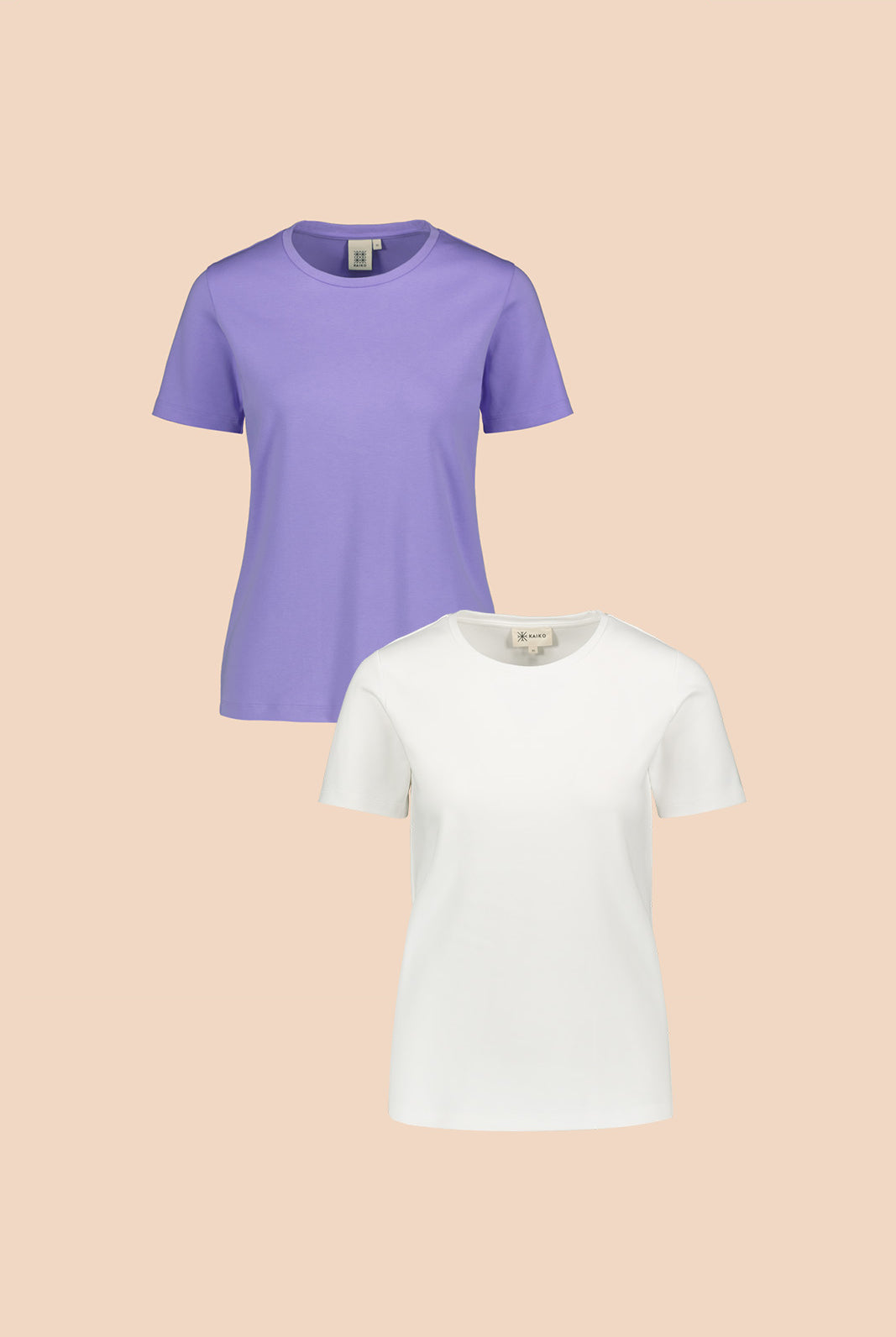 Im Kombi-Angebot gibt es ein gemustertes und ein einfarbiges T-Shirt. Das einfarbige Shirt besteht aus festem Interlock-Stoff, während das gemusterte aus etwas dünnerem Jersey gefertigt ist.