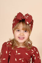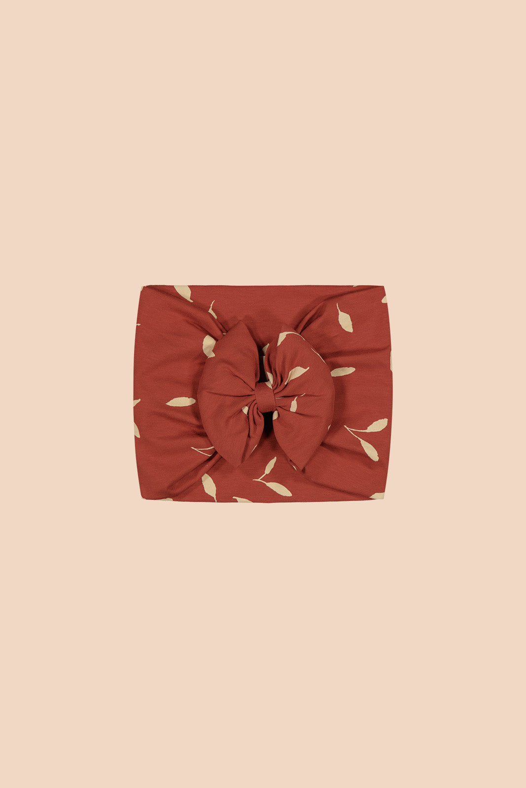 Das ikonische Valkama-Kopftuch im minimalistischen und ruhigen Windmuster, bei dem cremefarbene Blütenblätter auf einer mahagonifarbenen Basis flattern. Der Valkama Headwrap ist ein spektakuläres Stirnband und eignet sich dank seiner plüschigen Größe auch als Kopfbedeckung. Es wurden Anstrengungen unternommen, um das Produkt so zu gestalten, dass das Stirnband gut auf dem Kopf sitzt und die Schleife schön und reichhaltig ist. Die Breite kann angepasst werden, indem das Kopfband mehr oder weniger an den Kopf des Benutzers angepasst wird. Der Kopfwickel ist sehr flexibel.