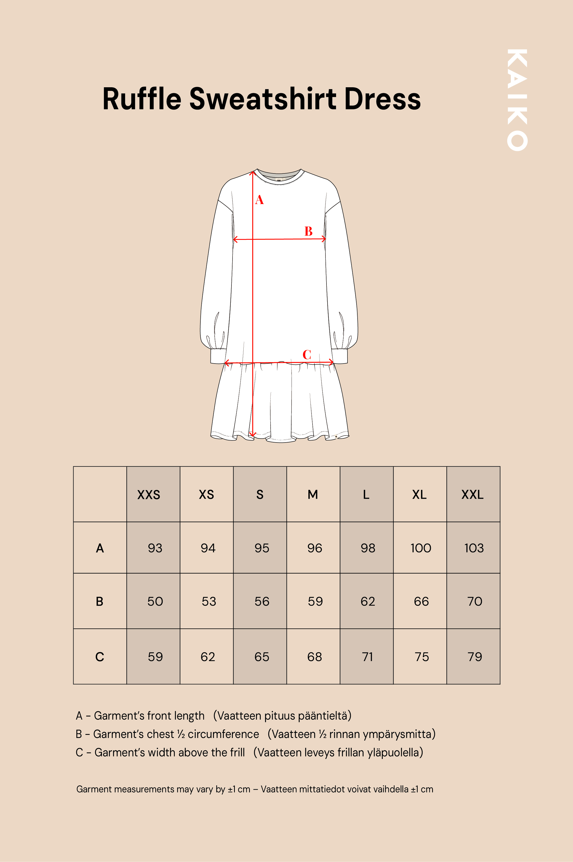 Ein lässiges und bequemes Damenkleid - das Ruffle Sweatshirt Dress ist aus hochwertigem Bio-Baumwoll-Stretch-Sweatshirt-Stoff gefertigt, der sich wunderbar weich auf der Haut anfühlt.