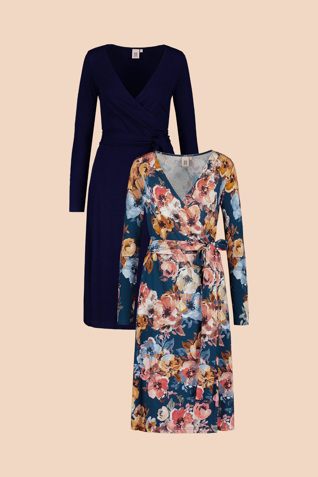 Soft Wrap Dress Double Pack, Moss Rose & Dark Blue