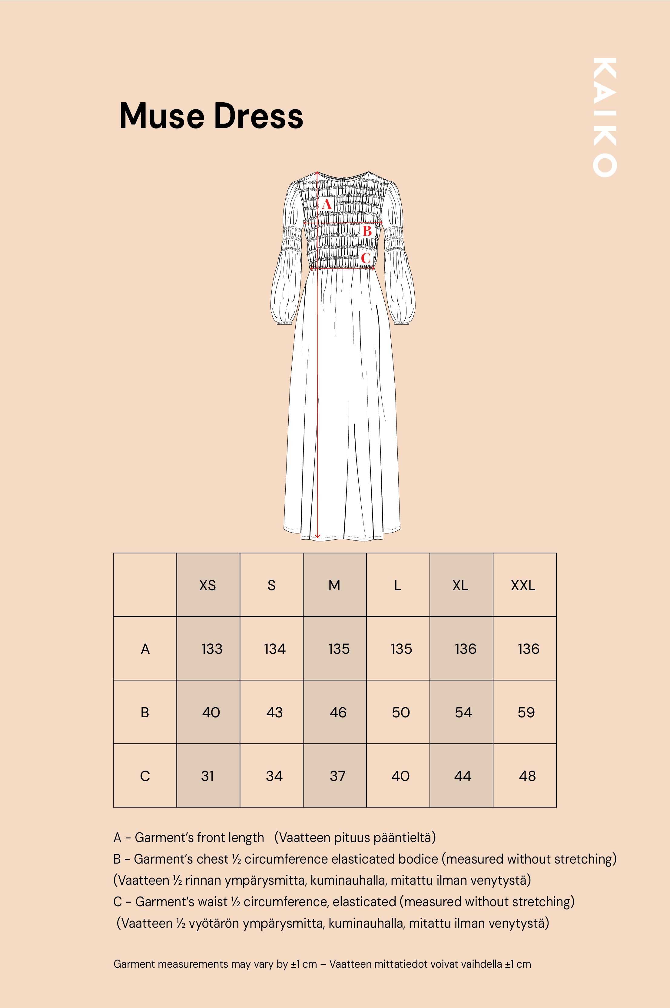 Das Kleid verfügt über einen langen Saum sowie lange Ärmel mit schönen gerafften Details. Das geraffte Oberteil auf der Vorderseite betont die Taille und schafft eine feminine Silhouette. Der elastische Taillenbund und das flexible, geraffte Mieder sorgen für hohen Tragekomfort. Im Nackenbereich befindet sich ein Schlitz mit Knopfverschluss.