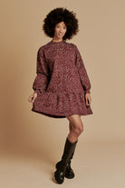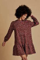 Ruffle Sweatshirt Dress, Wild Dots Burgundy