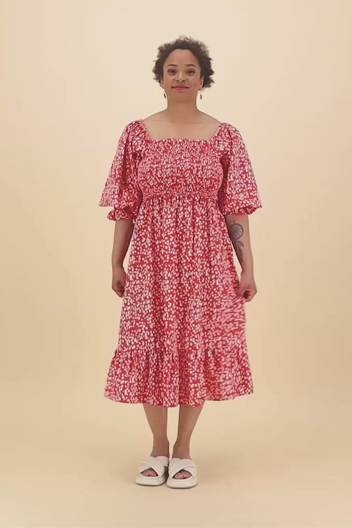 Smock Dress, Flora Red