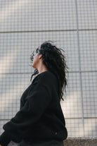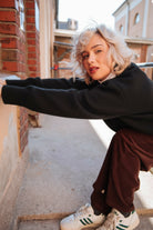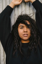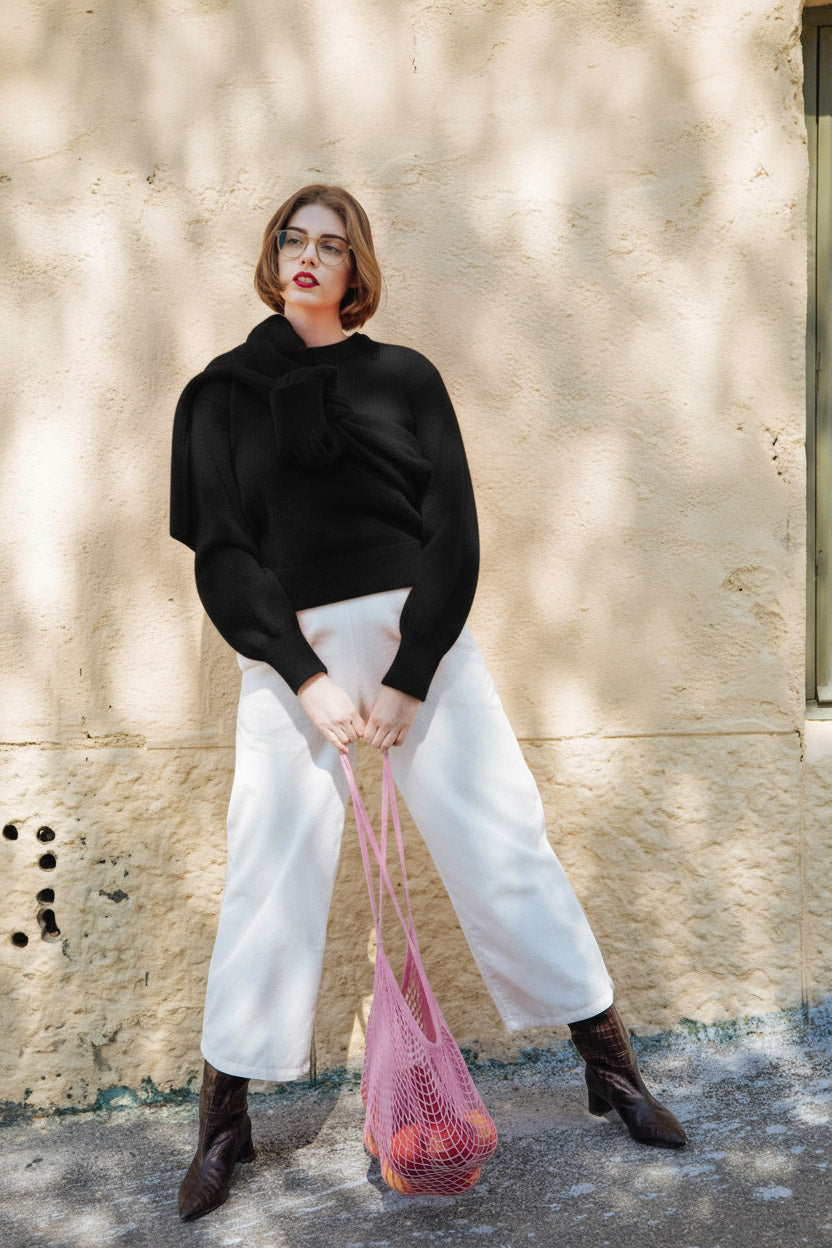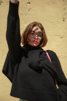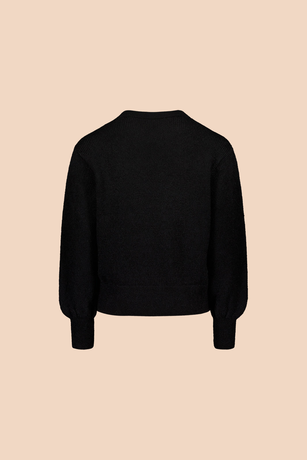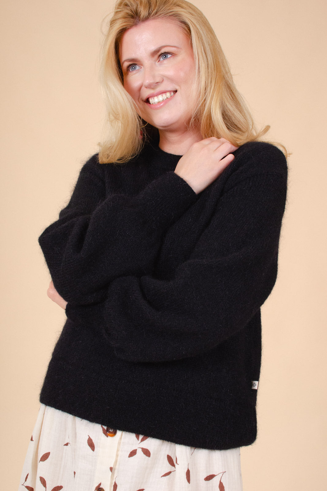 Der Mohair Jumper ist ein kuscheliger Wollpullover aus warmem Mohair-Mischgewebe. Der Pullover hat eine entspannte Passform, eine tiefer gesetzte Schulternaht und weite, ballonartige Ärmel. Die Bündchen an den Ärmeln, am Saum und am Ausschnitt sind gerippt. Das breite Saumbündchen kann auch nach oben geklappt werden, um den Saum zu verkürzen. In klassischem Schwarz gehalten.
