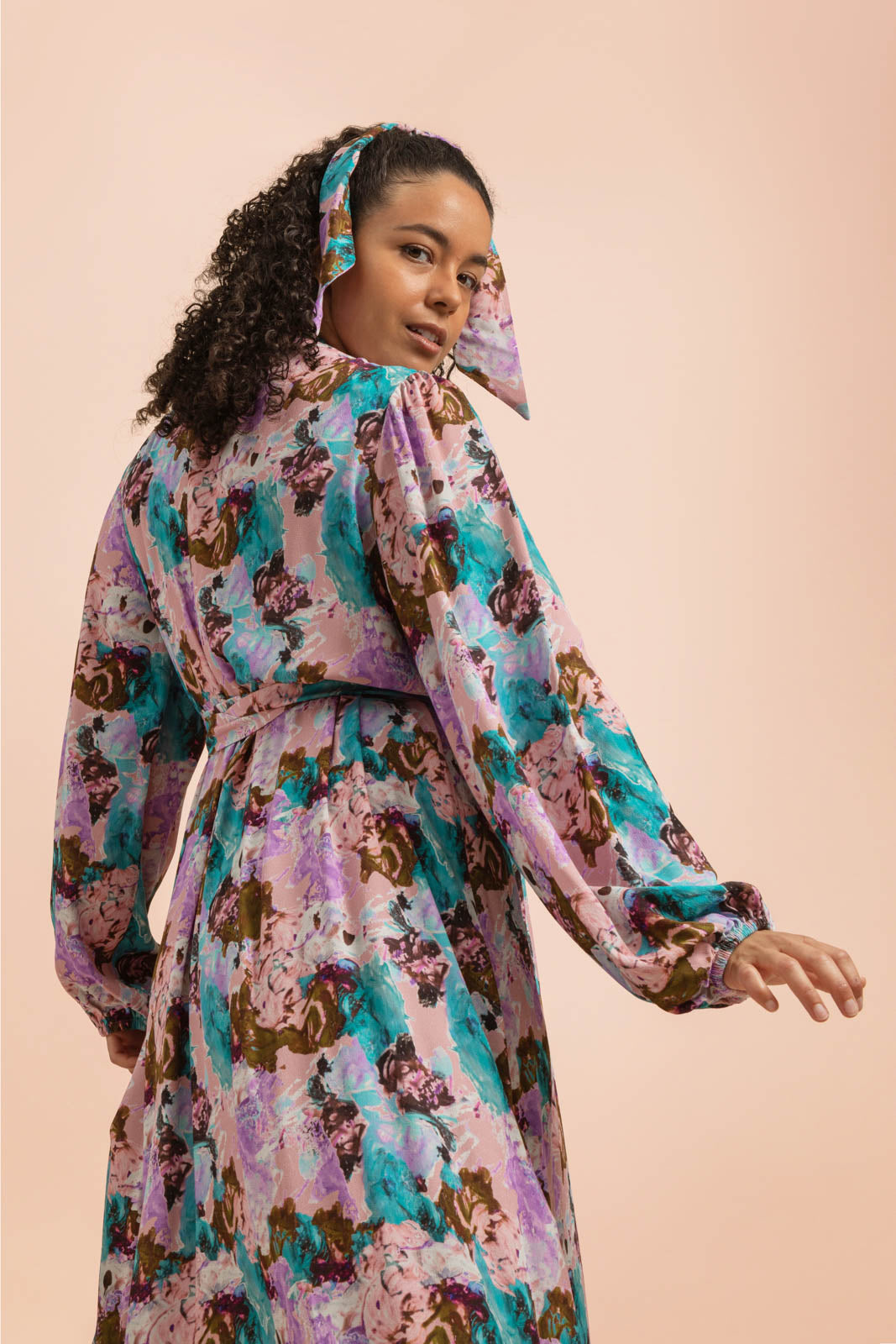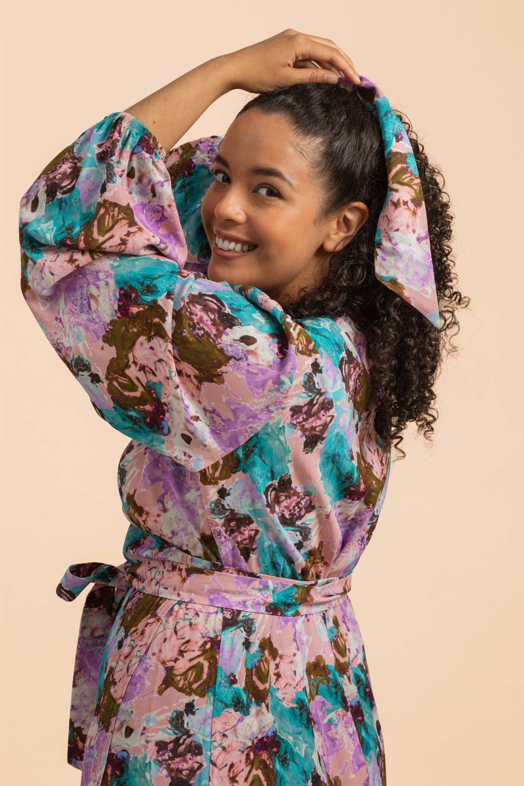 Der Pferdeschwanzschal verfügt über ein auffälliges Aquarelldesign: Candy Aquarelle. An einem schwarzen Haarband aus Gummi ist ein Minituch befestigt, welches bei Bedarf zu anderen Stylingzwecken abgenommen werden kann.