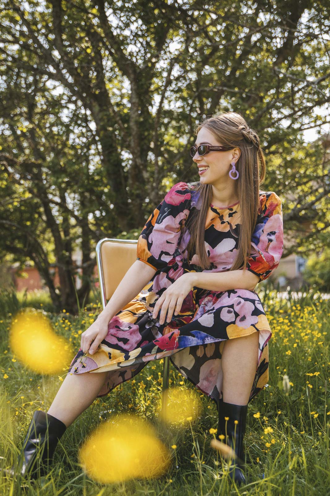Style dieses hochwertige Damenkleid passend zu deinem Look: kombiniere es mit Absätzen und einer Clutch für festliche Anlässe oder trage es lässig mit Sneakers oder Sandalen im Alltag. Der Wild Lea-Blumenprint kombiniert einen schwarzen Grundton mit großformatigen Aquarellblumen und schafft so ein zeitloses und beeindruckendes Design.