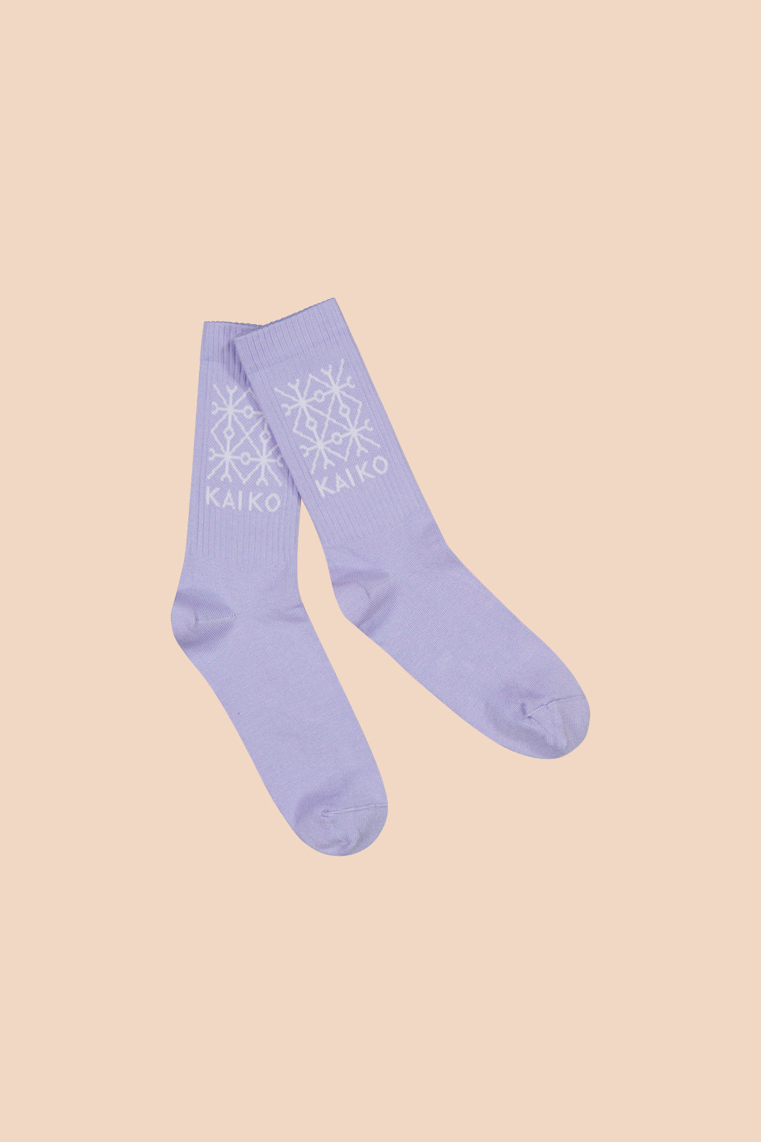Lass die Kaiko Statement-Socken unter deinen Hosenbeinen hervorblitzen! Die Kaiko Logo-Socken bestehen aus einer glatten und weichen Bio-Baumwollmischung. Die Unisex-Socken haben einen klassischen, nicht einengenden Tennis-Schaft und sind mit einem weißen, eingestrickten Kaiko-Logo verziert. Dank ihrer Struktur scheuern die Socken nicht; sogar die Naht über den Zehen ist auf der Außenseite gestrickt, damit sie nicht an der Haut reibt. Größe 36-40.