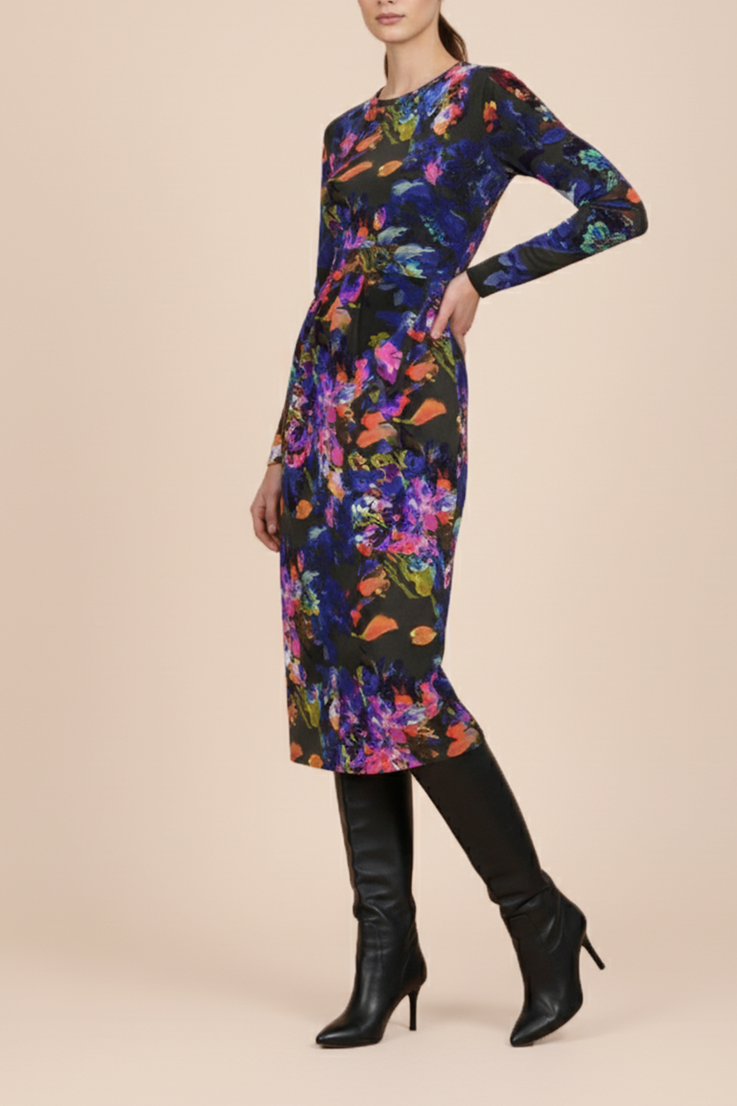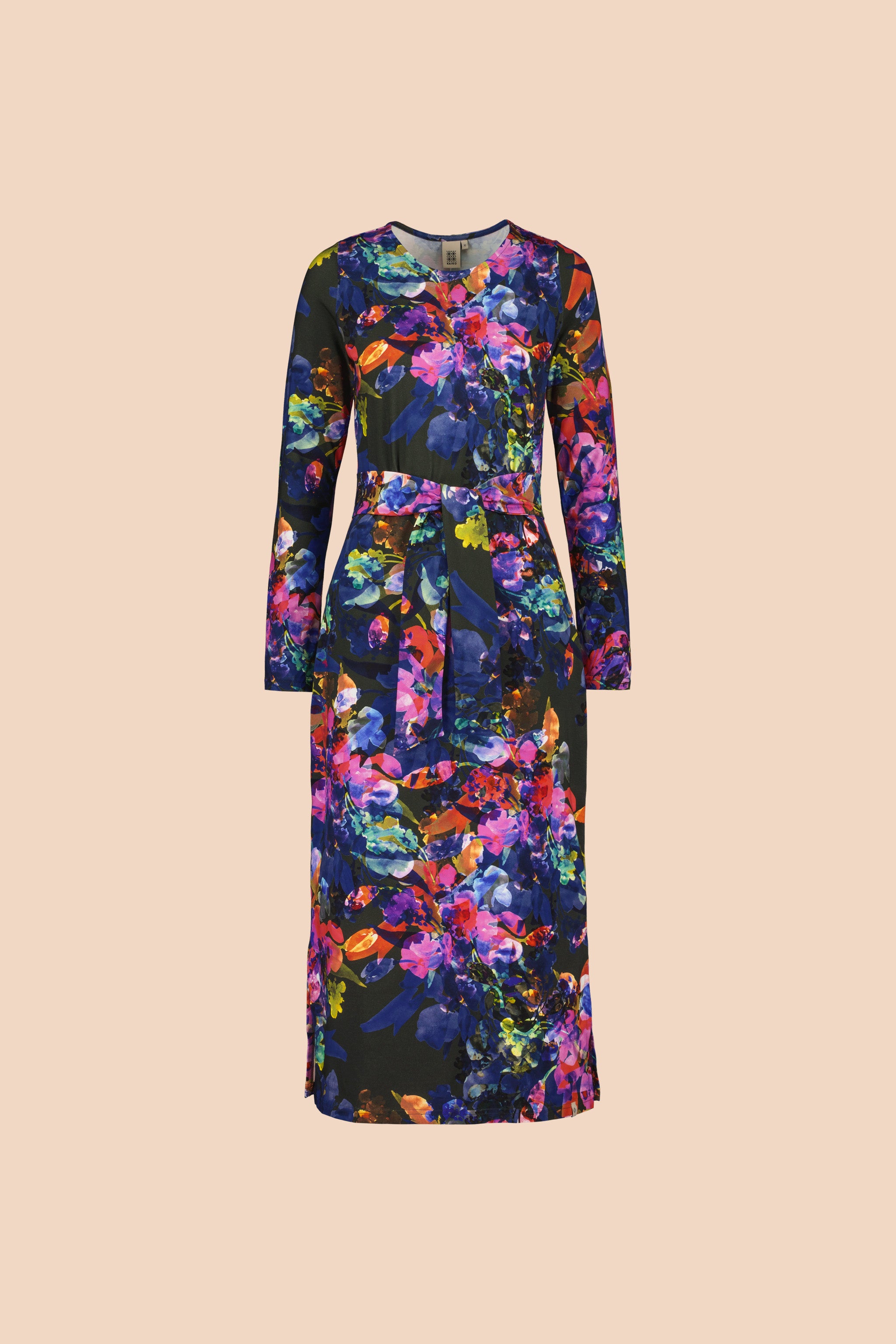 Pehmeästä luomupuuvillatrikoosta valmistettu Midi Belted Dress on malliltaan naisellinen ja ihonmyötäinen. Mekon sivusaumoissa on vyötäröä korostavat leveät nauhat, jotka voi solmia joko eteen tai taakse. Helman pituus on noin pohjemittainen, ja sivusaumoissa kulkee 20 cm halkiot. Mekossa on pitkät hihat. Midi Belted Dress on helppo stailata niin arki- kuin juhlapäiviin.