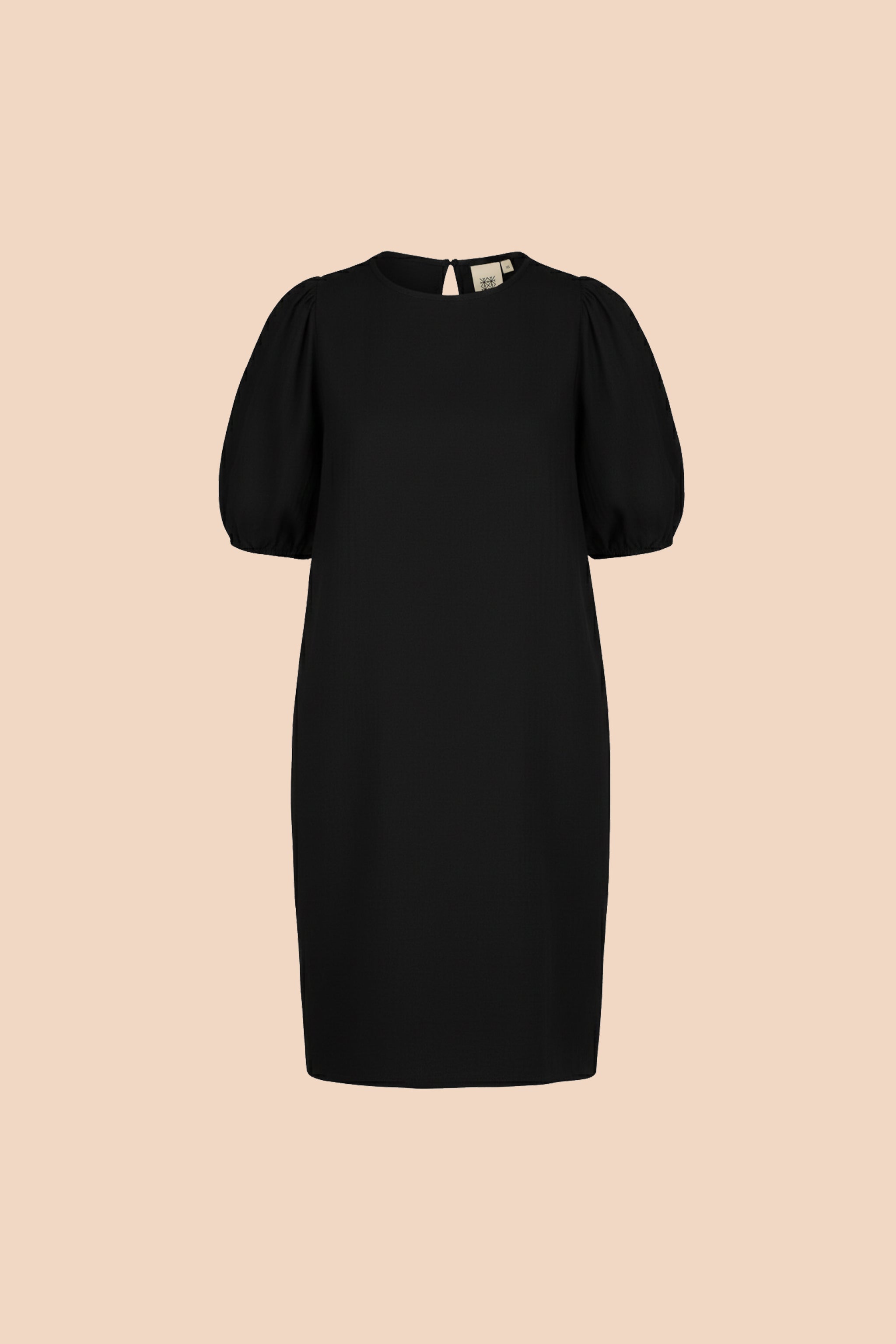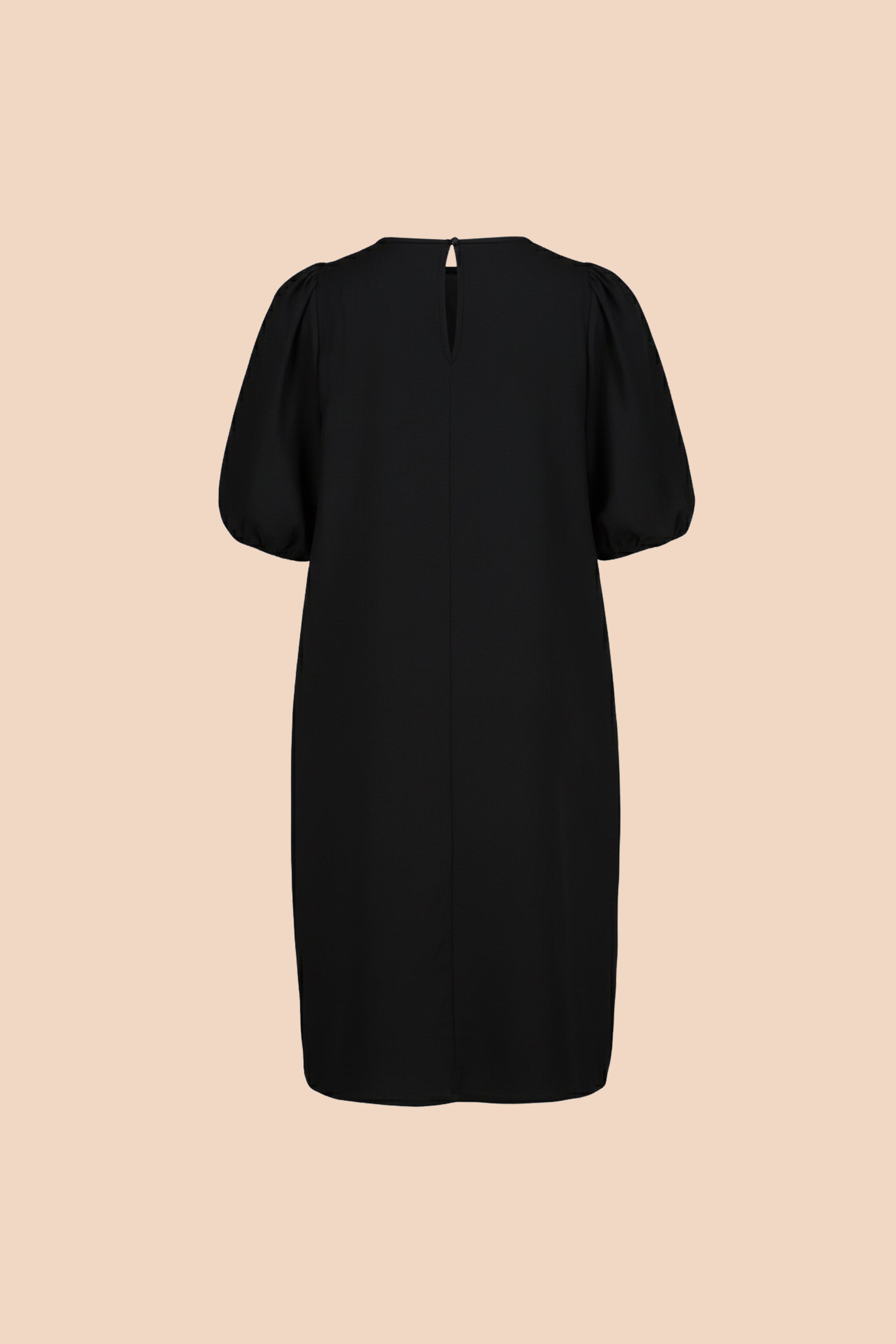 Ease Dress -mekossa on väljä, suora siluetti ja sivusaumoissa on taskut. Kyynärvarsimittaisissa hihoissa on olalla poimutusta, joka luo hihoihin kaunista volyymia, ja hihansuut on poimutettu kuminauhalla. Niskassa on pieni halkio ja nappikiinnitys. Värinä klassinen musta.