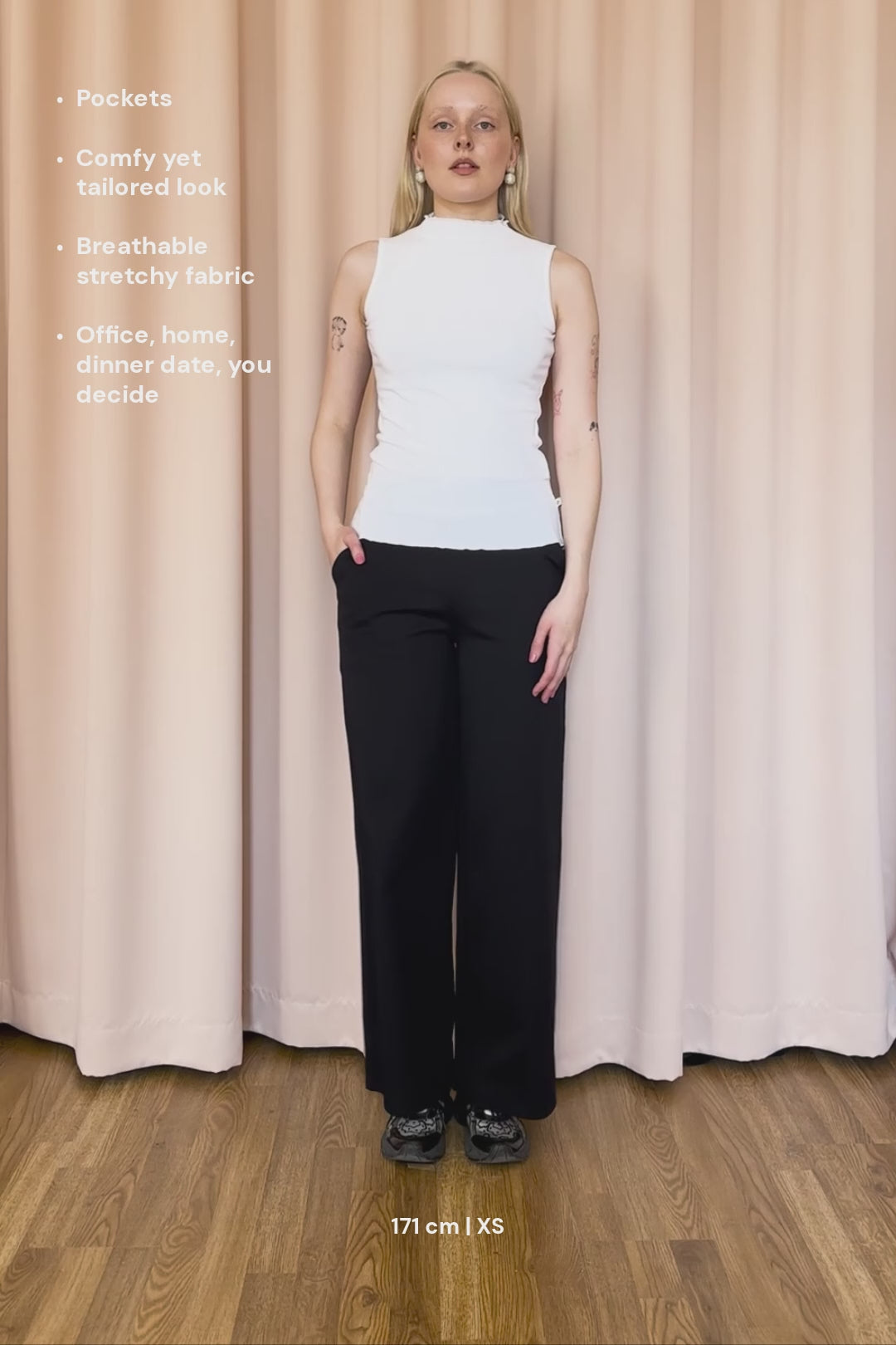 Skarpit Everyday Pants -housut eivät tingi mukavuudesta. Napakasta ja joustavasta ponte roma -interlock-neuloksesta valmistetut housut näyttävät skarpeilta, ja tuntuvat päällä ihanan pehmeiltä. Housuissa on leveä joustava vyötärö (5 cm korkea) ja edessä taskut. Sivusaumoissa kulkee denim-tikkaus, joka luo housuihin ekstraskarppia fiilistä. Housujen värinä herkullinen ruskea.