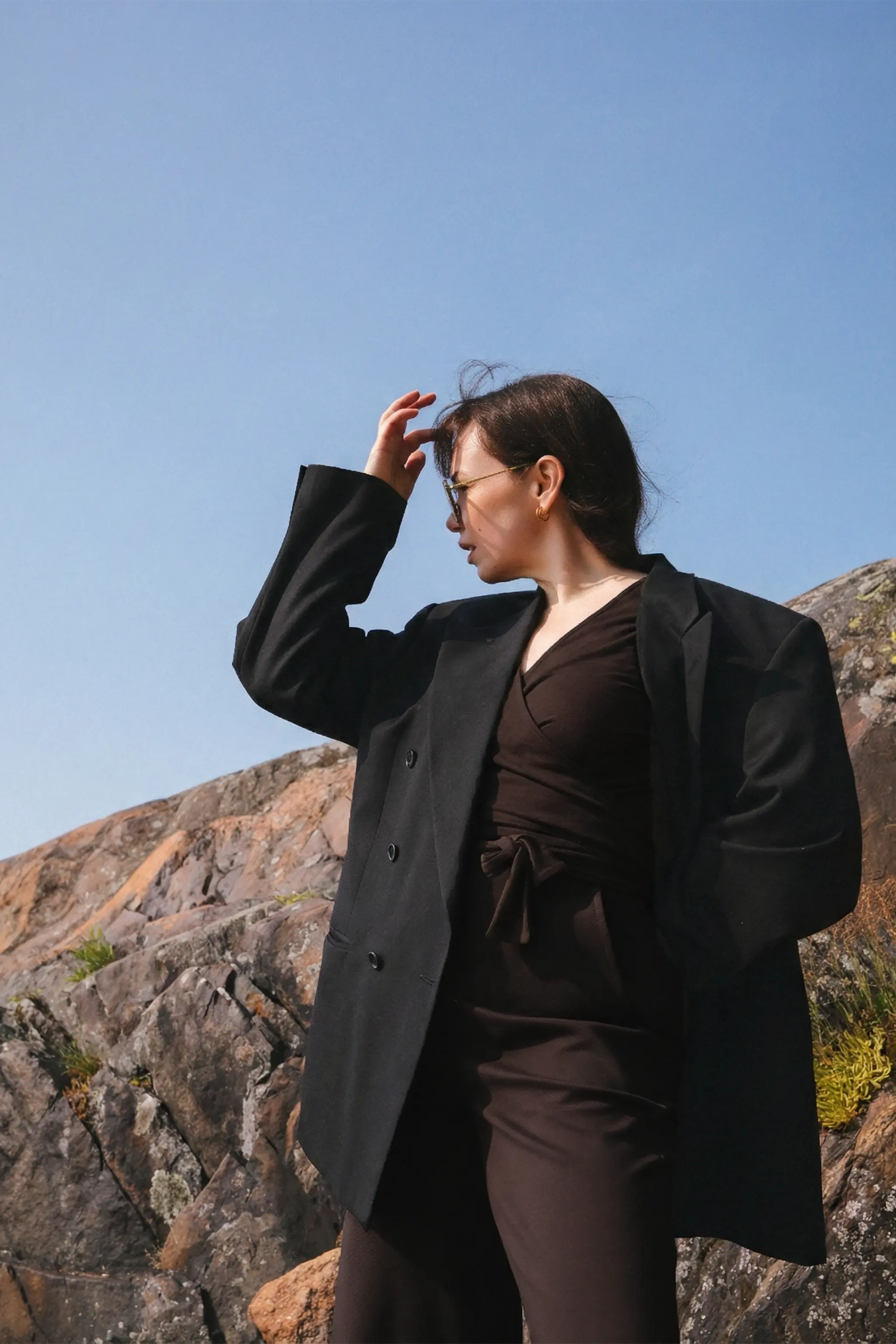 Paidassa on täyspitkät hihat, hieman lyhyempi helma sekä naisellinen kietaisuleikkaus. Vyötäröllä olevilla nauhoilla istuvuuden voi säätää itselle mieluisaksi. Kietaisupaidan sävy on tumma ruskea.